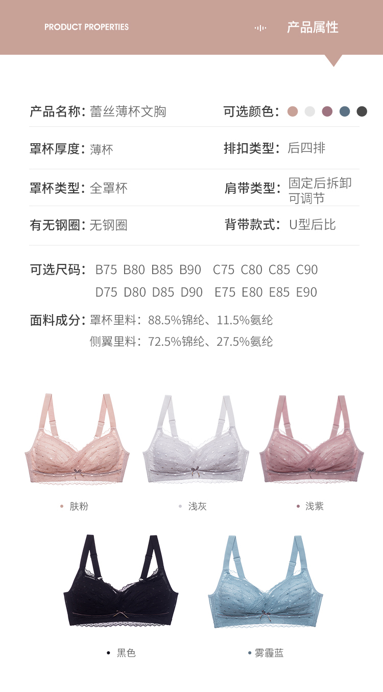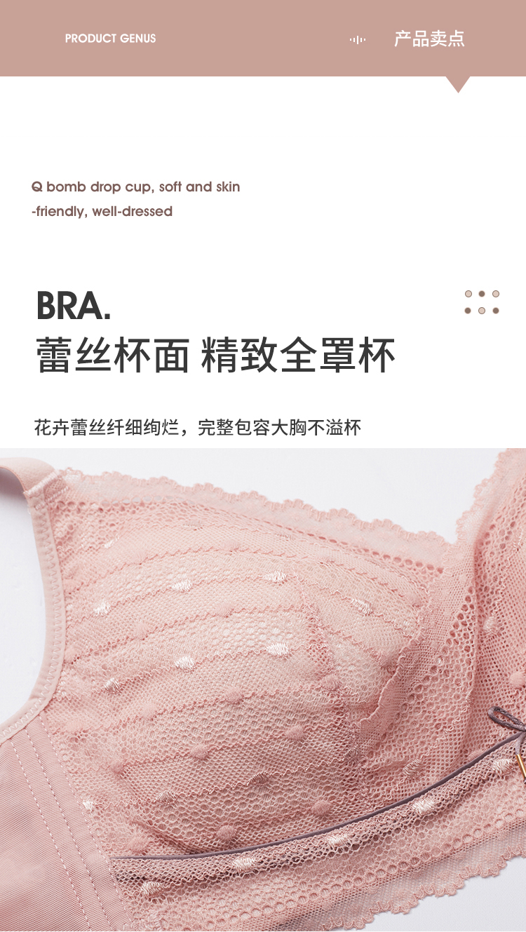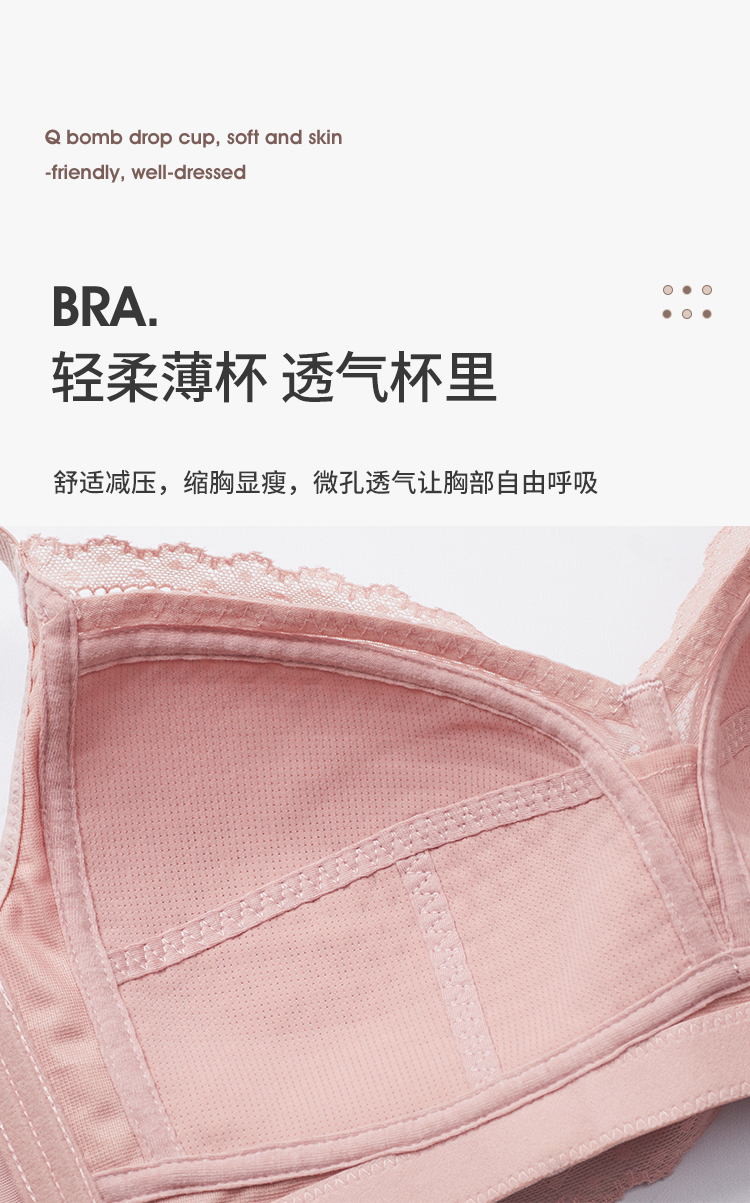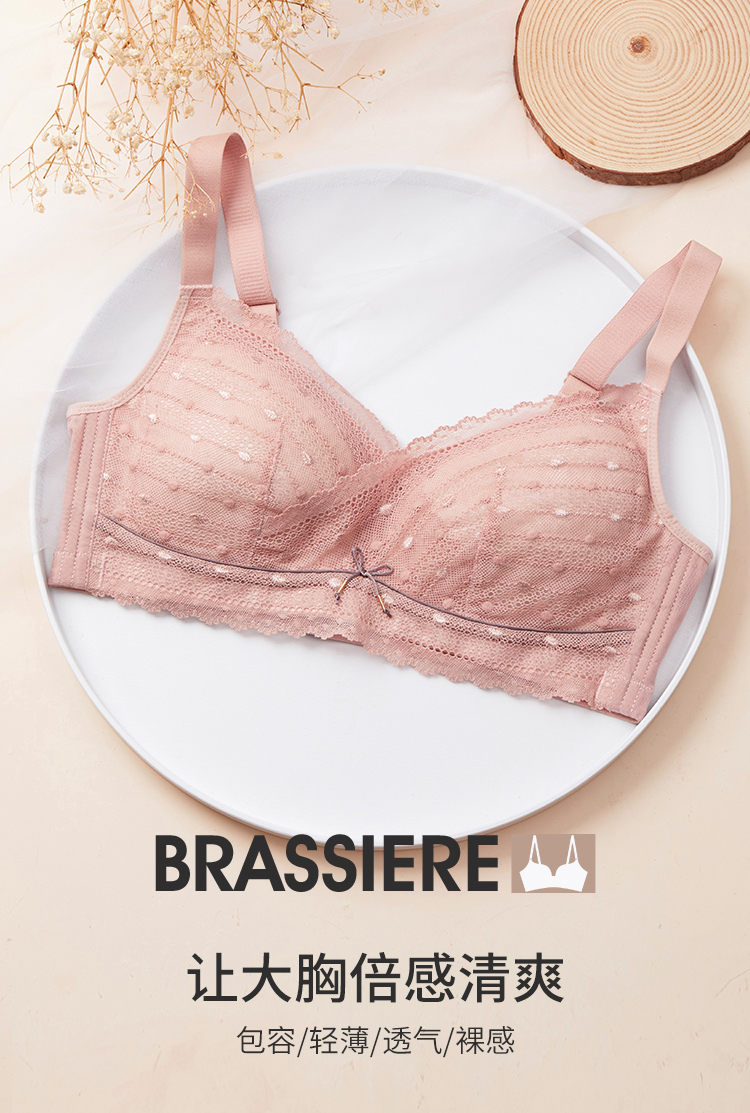 雅黛丽内衣女薄杯大胸显小无钢圈上托胸罩薄款蕾丝性感文胸
