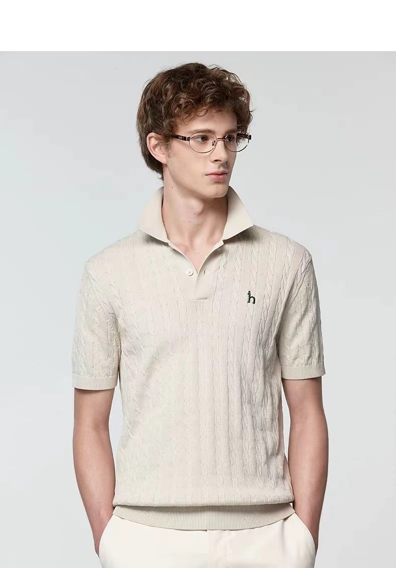 男士绞花短袖POLO翻领针织衫夏季通勤老钱风休闲上衣,面料:82.8%棉17.2%涤纶,这款毛衣的设计兼具了休闲舒适感与时尚气质,本季的主推款式。翻领”和“绞花”是这款毛衣醉大的两个设计亮点。精典的阿兰编织手法,赋予毛衣立体感和复古学院风。POLO衫式的纽扣翻领,打造干练又减龄的造型。采用优质羊毛混纺,保证保暖性的同时兼顾亲肤感和抗起球能力。实穿性与搭配 非常百搭,可内搭衬衫露出领口,或直接单穿。下装可搭配牛仔裤、休闲裤或西裤!适用于通勤、休闲等多种场合。