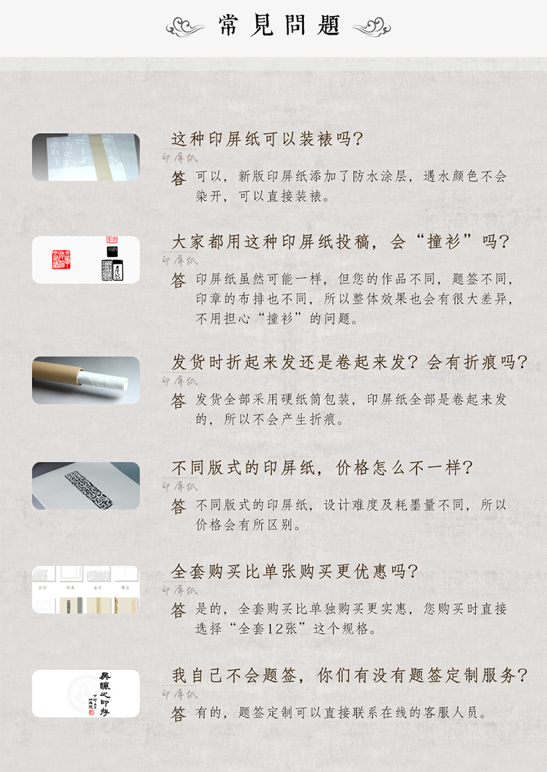 高清彩色印屏纸 20种版式 篆刻投展印屏纸四尺对开六尺对开