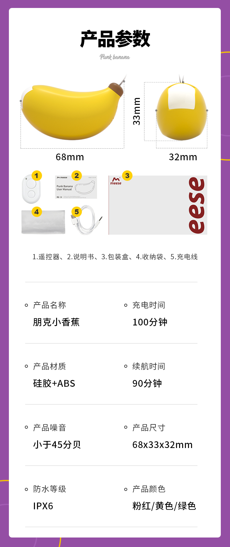 meese小香蕉跳蛋多彩卡通遥控控制C点G点情趣跳蛋女用成人用品穿戴震动按摩跳蛋