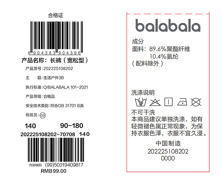 巴拉巴拉童装儿童裤子男女童2025新款夏薄款裤子速干