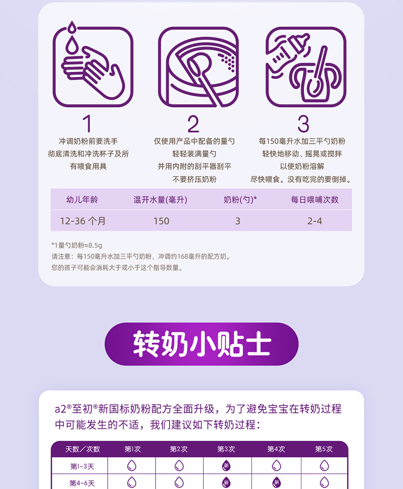 【新国标】a2至初奶粉3段850g(12-36月龄)