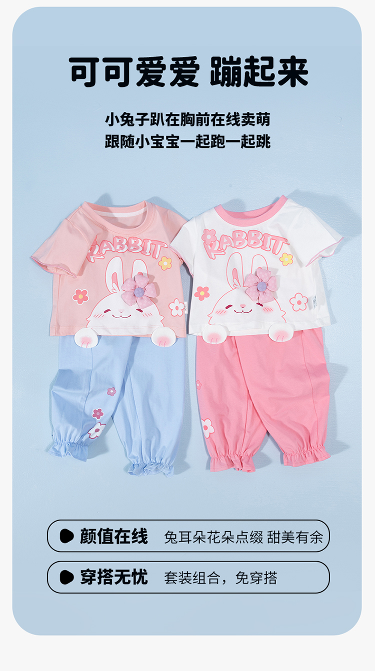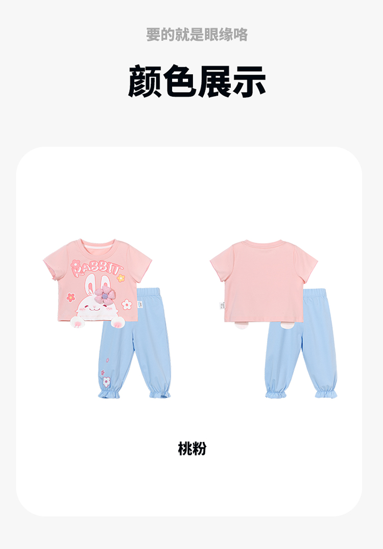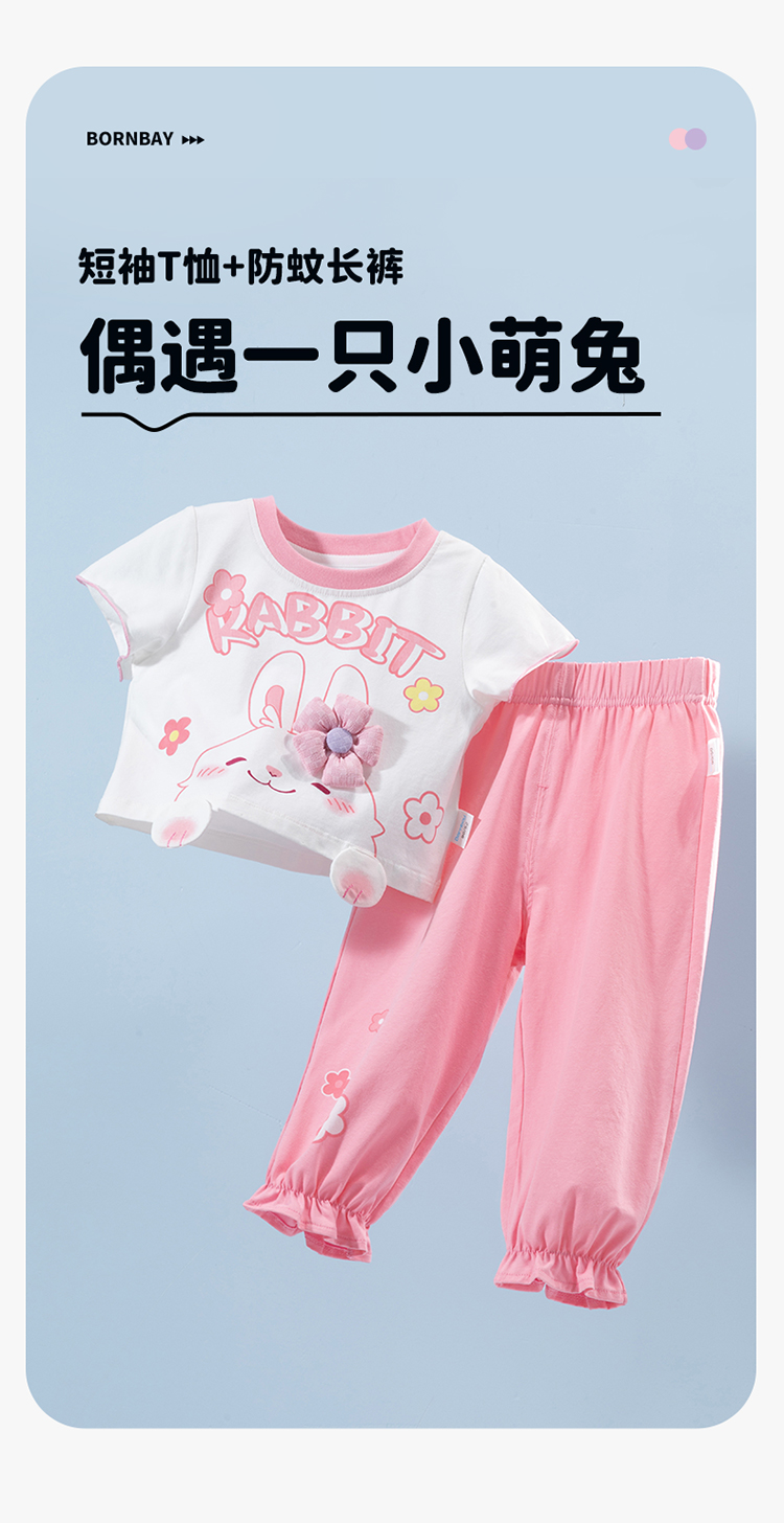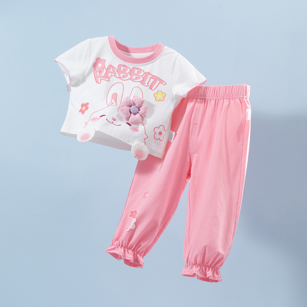 贝贝怡童装女童夏季套装两件套可爱t恤长裤儿童洋气夏装女孩衣服