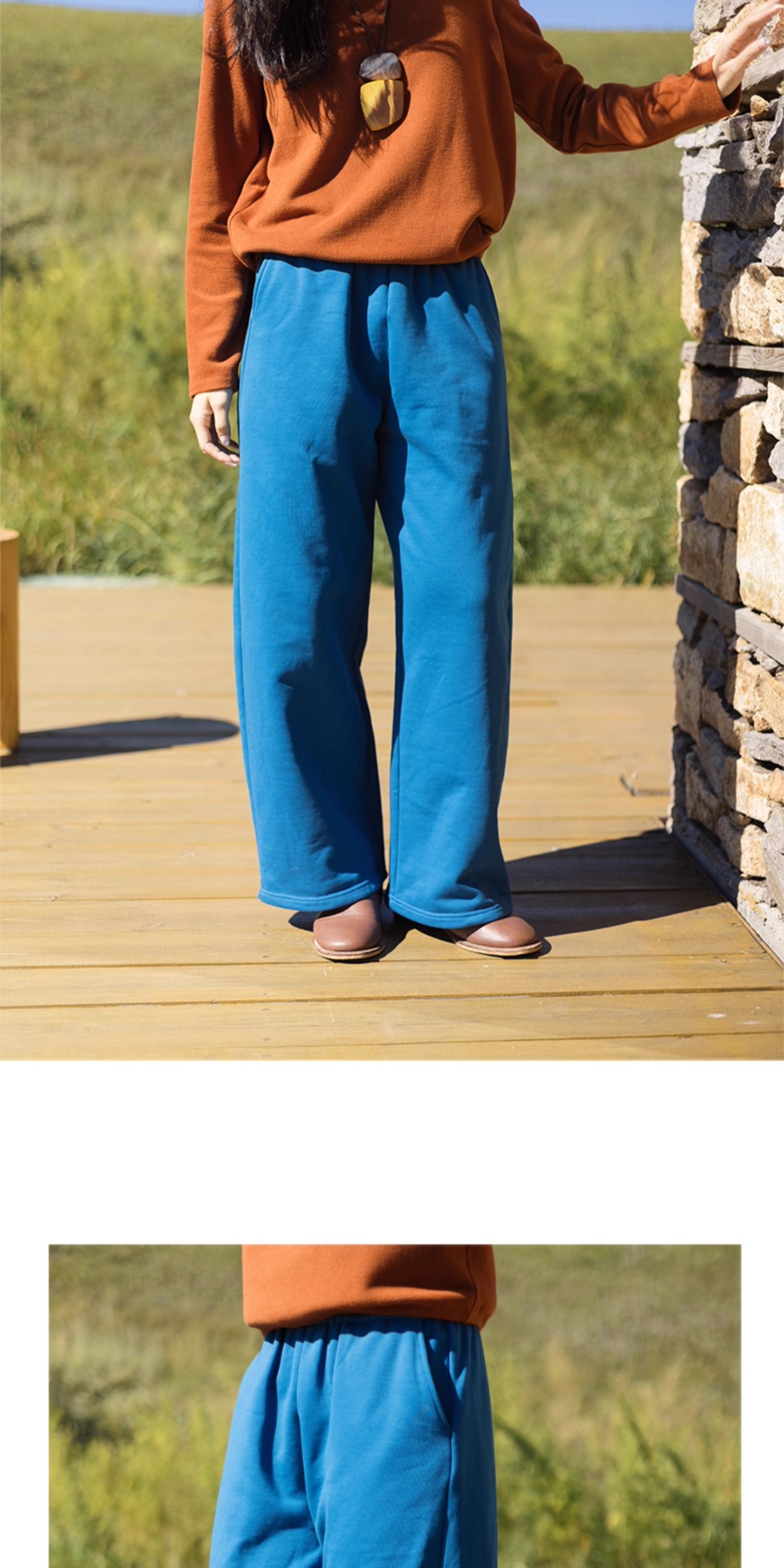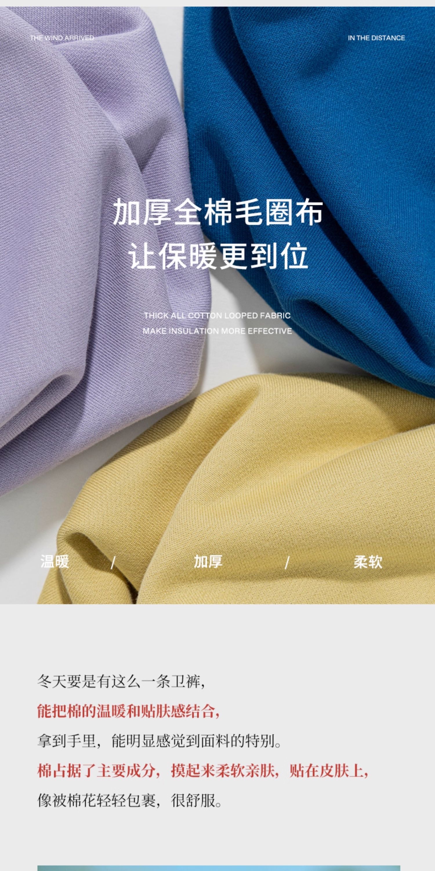 特绽放650朵/全棉毛圈布抓毛加厚松紧腰可调节脚口卫裤女休闲长裤