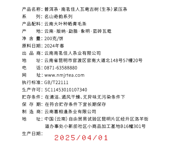 [买7送1]2025《景迈》古树春茶 生茶 357克/饼