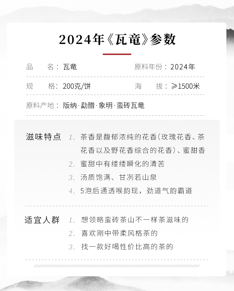【买5送1】2024《瓦竜》古树春茶 200克/饼 生茶