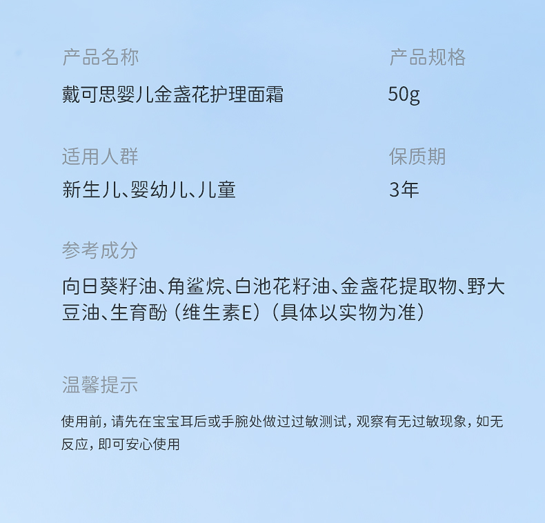 【0+】戴可思金盏花新护理面霜 滋润保湿 50g*2瓶装