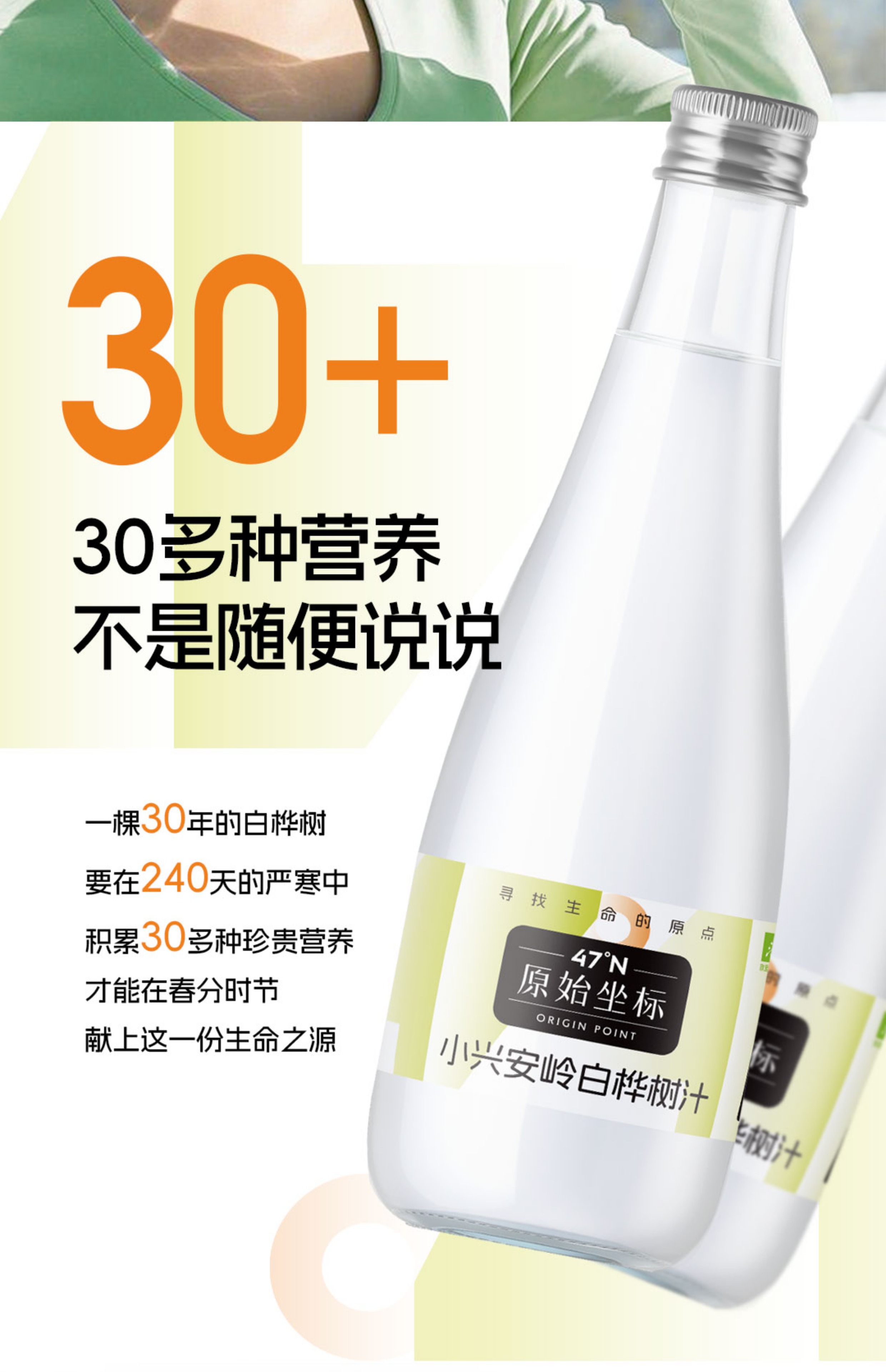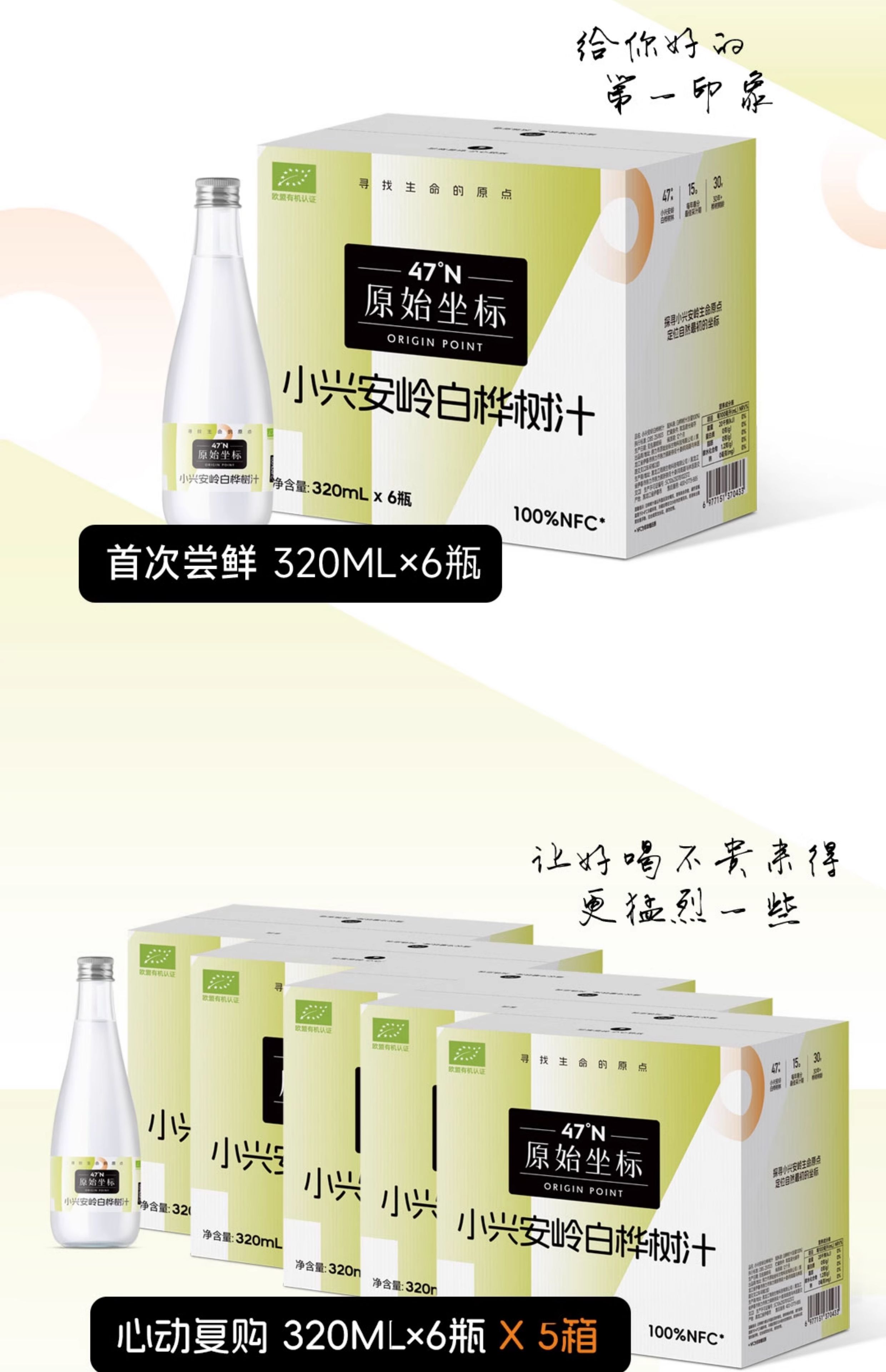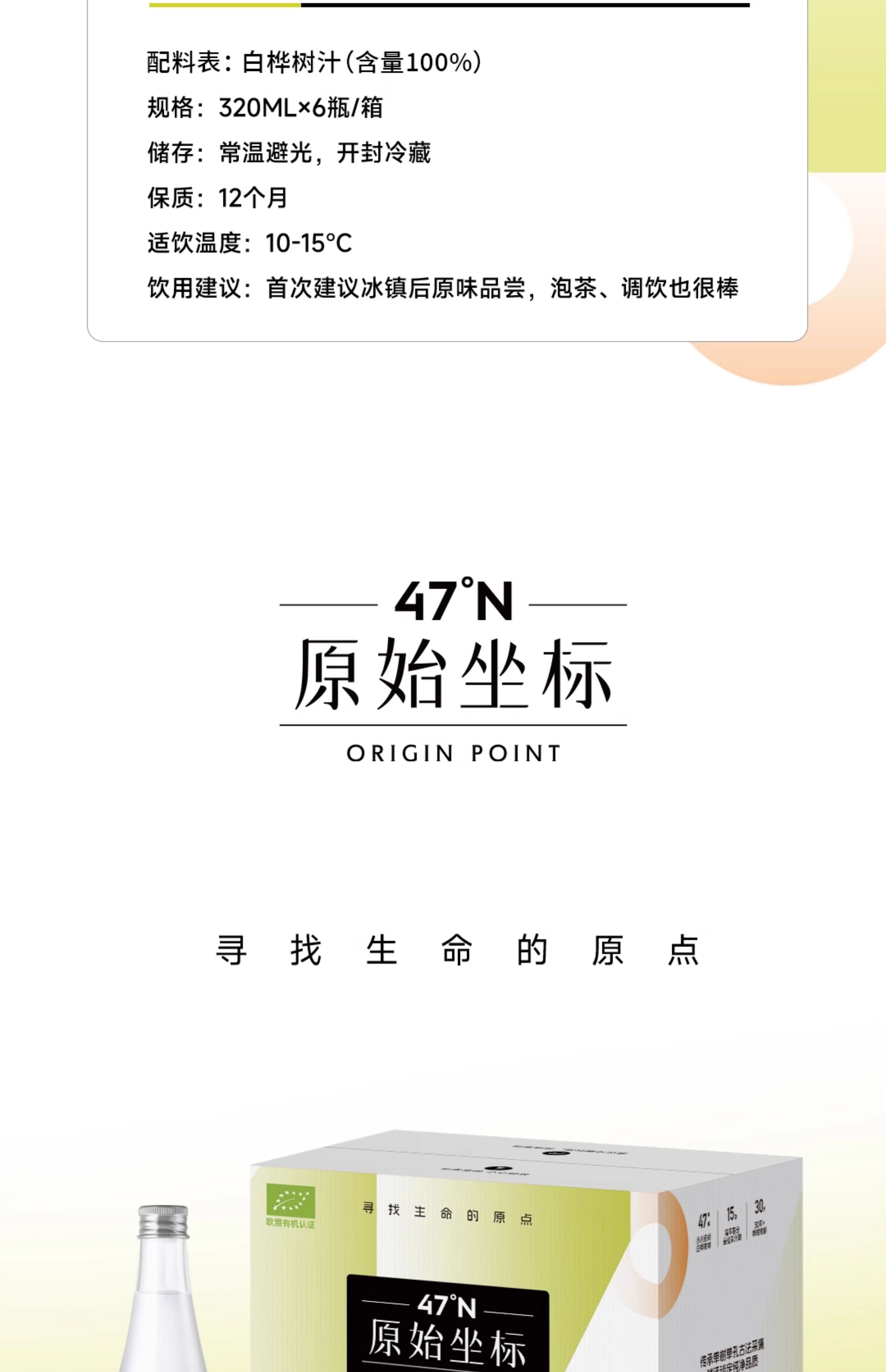 【超值4箱装】原始坐标 北纬47°天然采集 小兴安岭白桦树汁 单树单孔采集三年轮采 320ml*6瓶*4箱