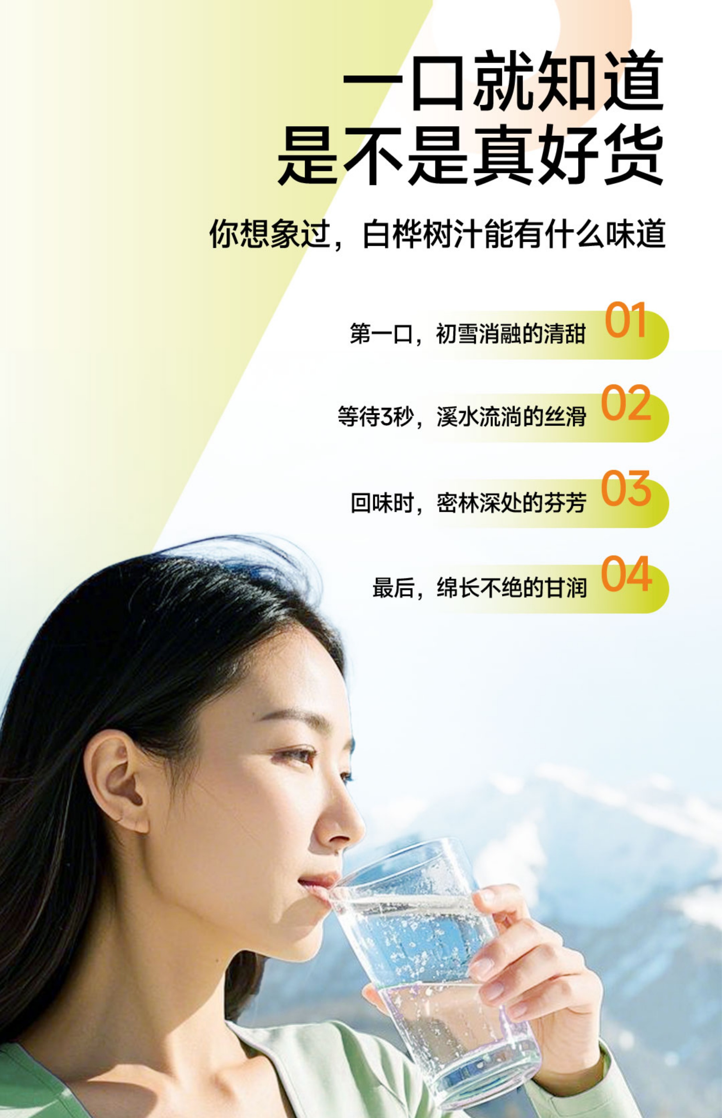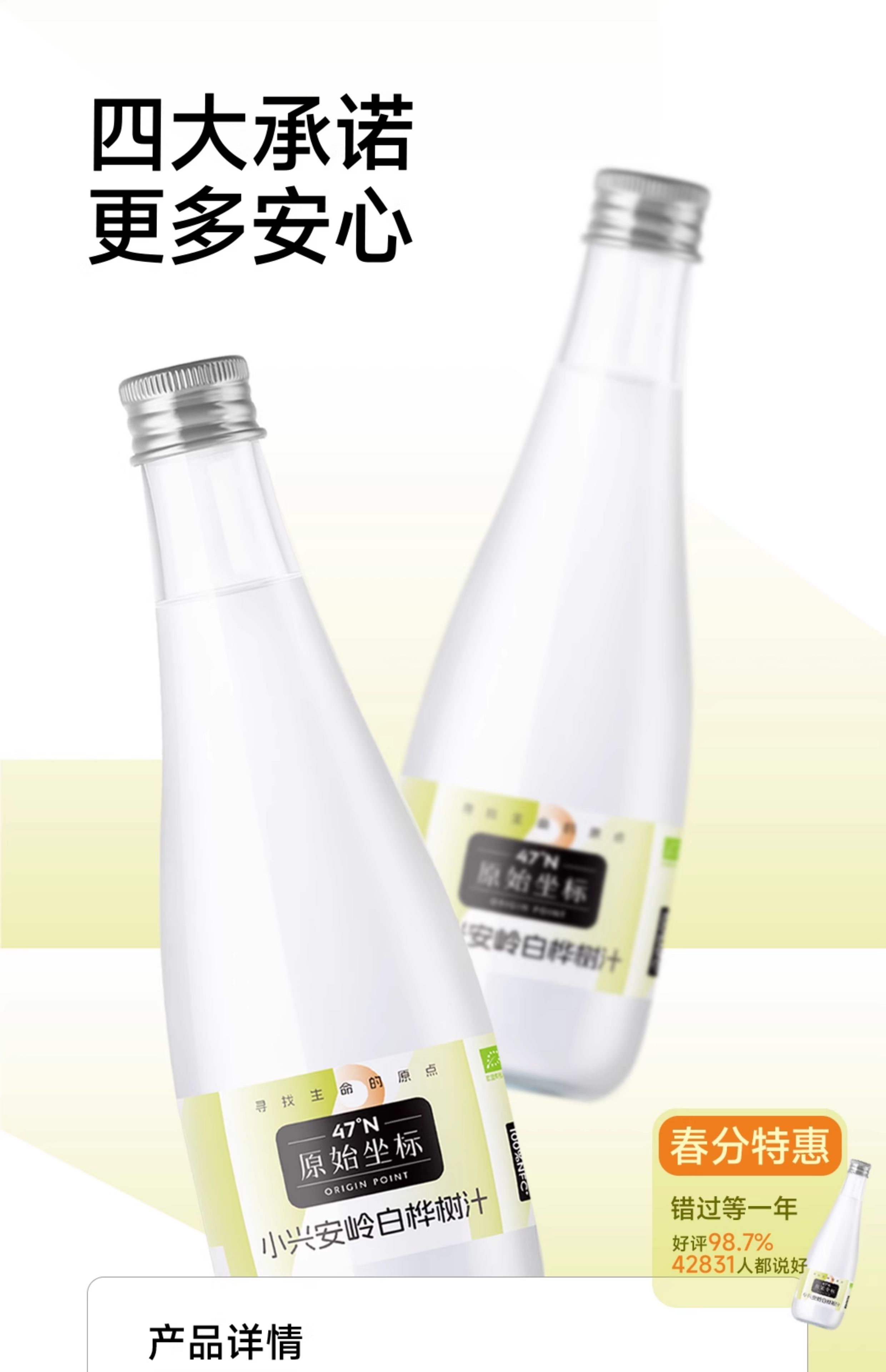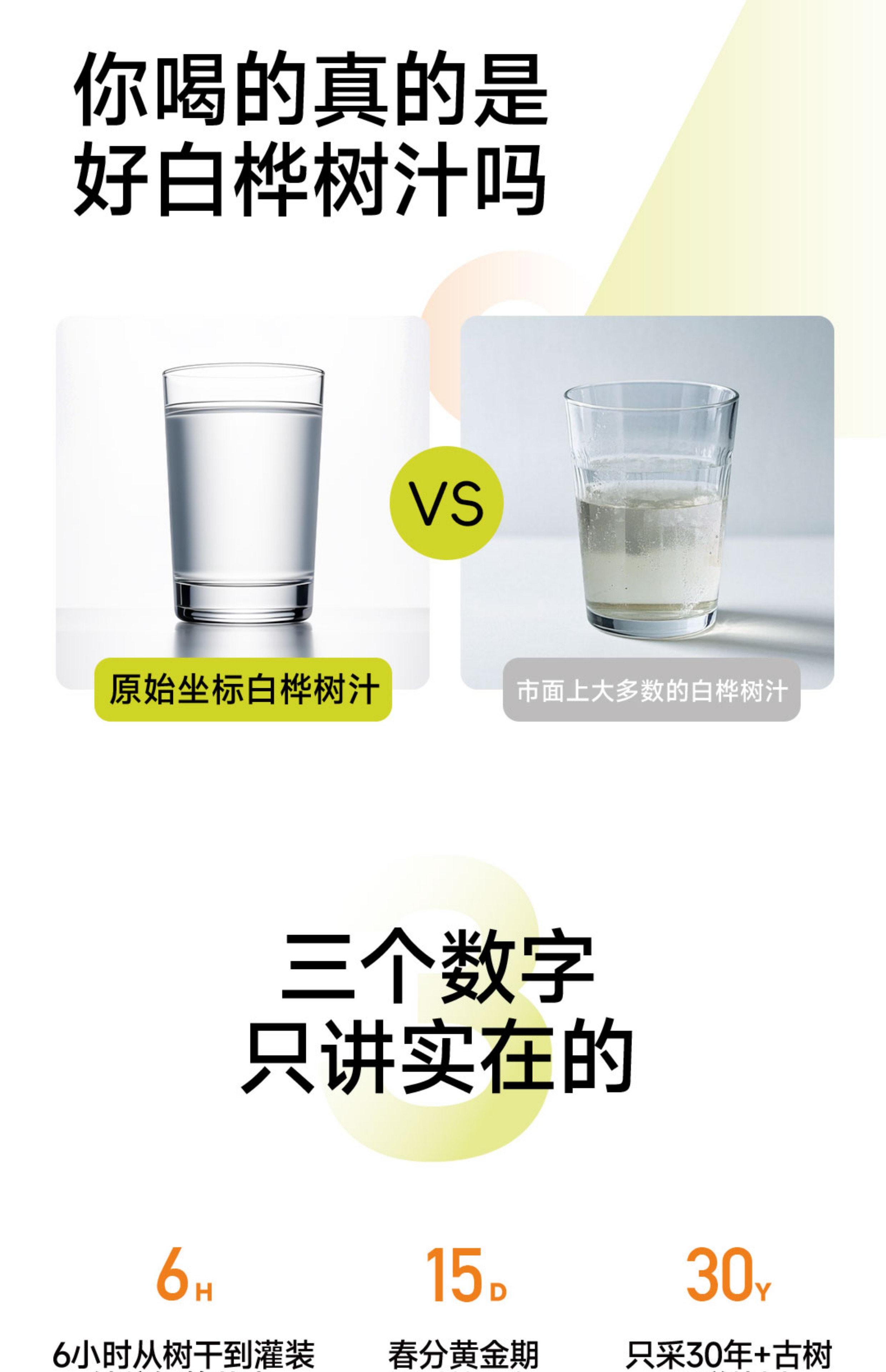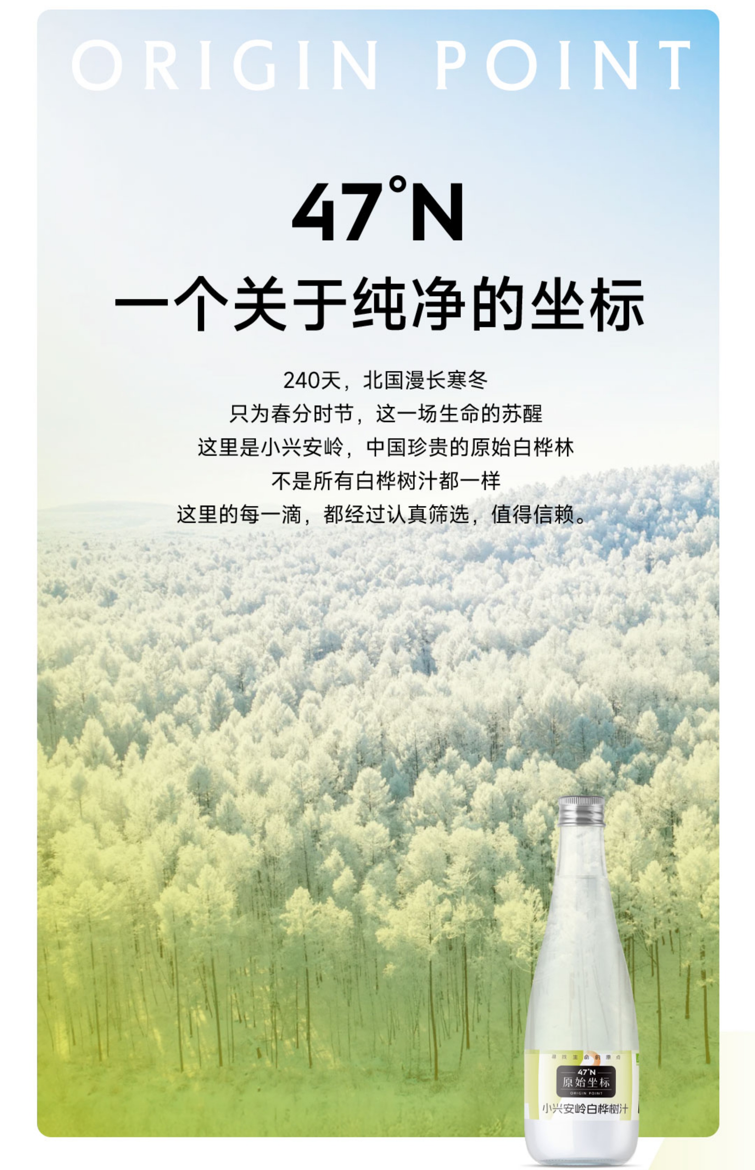 【超值4箱装】原始坐标 北纬47°天然采集 小兴安岭白桦树汁 单树单孔采集三年轮采 320ml*6瓶*4箱