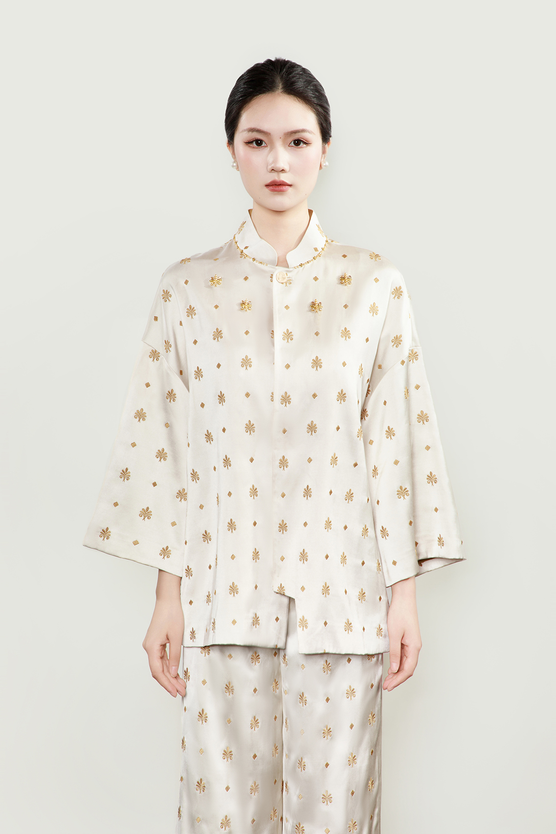 盛唐牡丹 | 缠枝喜鹊纹系带上衣