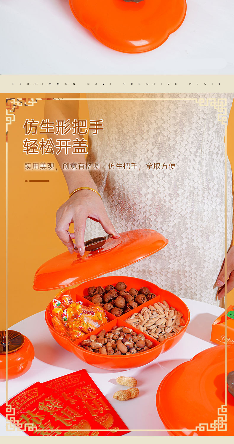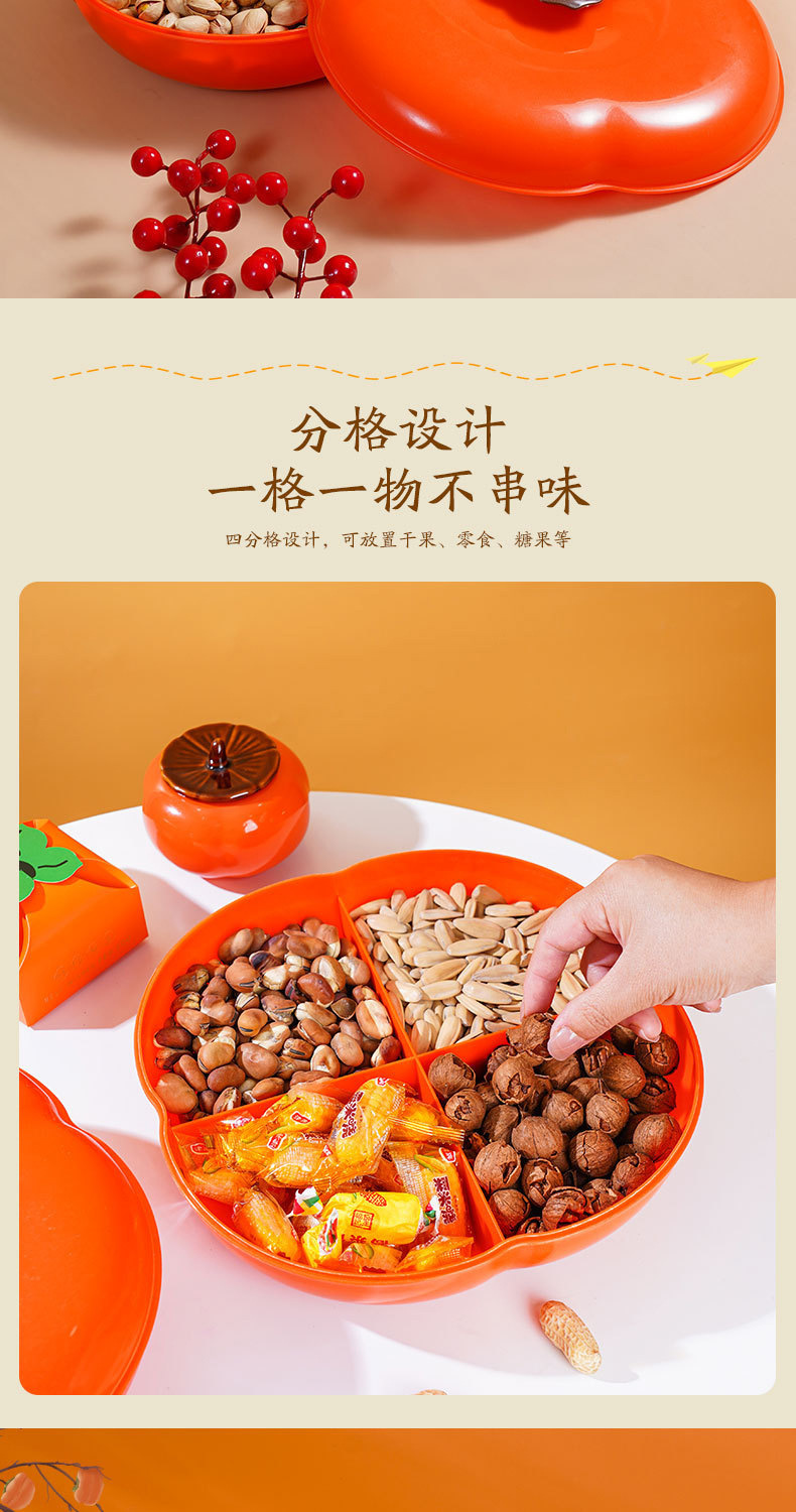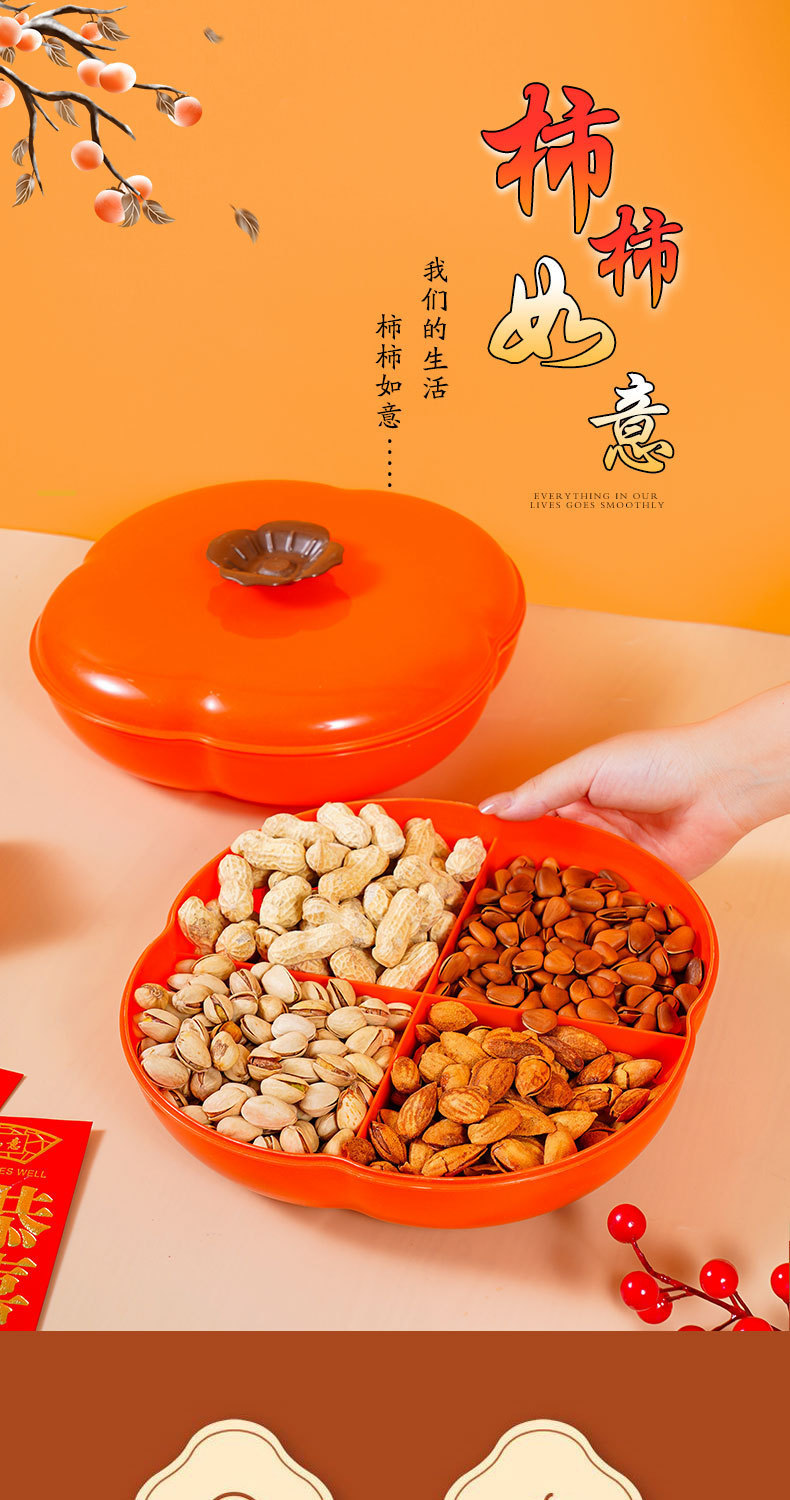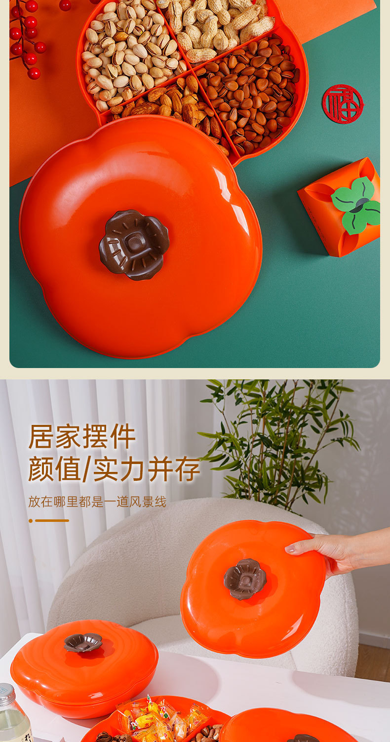 【柿柿如意❗️纳福喜乐柿子果盘】柿柿常欢喜,顺风又顺水!新款干果盒家用客厅坚果盘节日装零食水果盘带盖