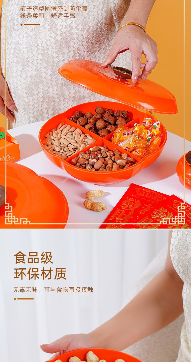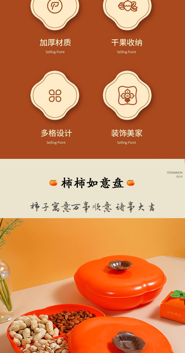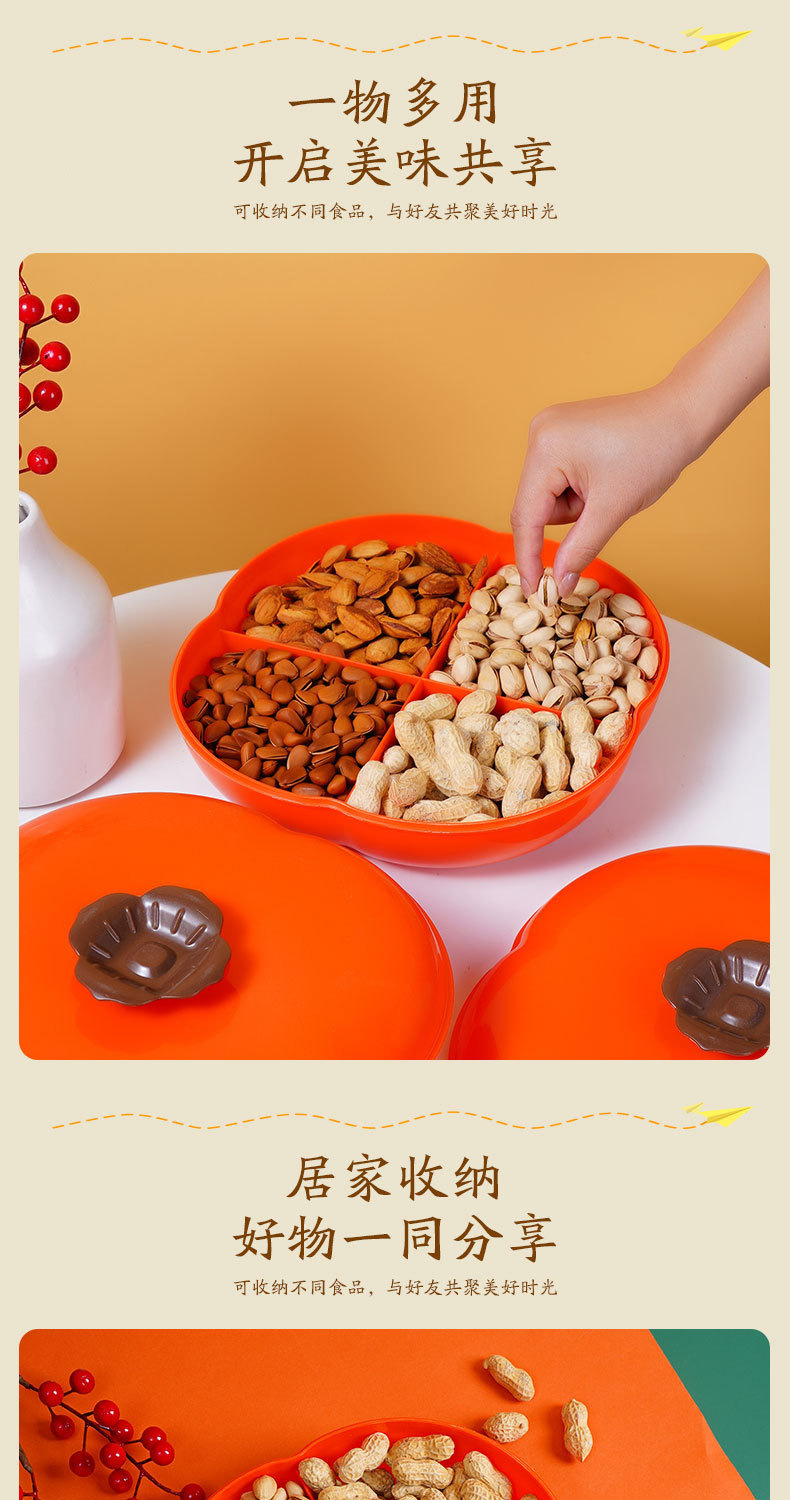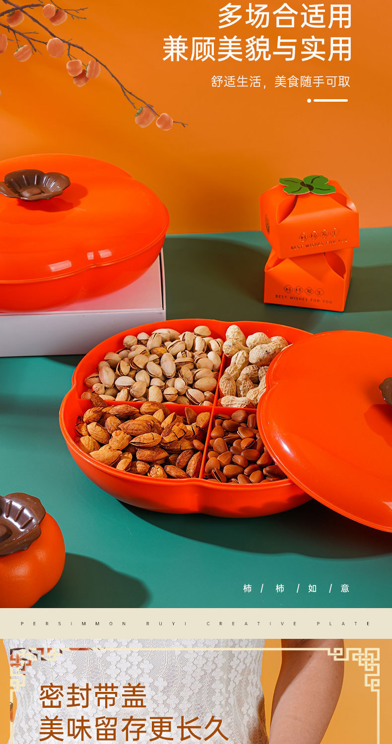 【柿柿如意❗️纳福喜乐柿子果盘】柿柿常欢喜,顺风又顺水!新款干果盒家用客厅坚果盘节日装零食水果盘带盖