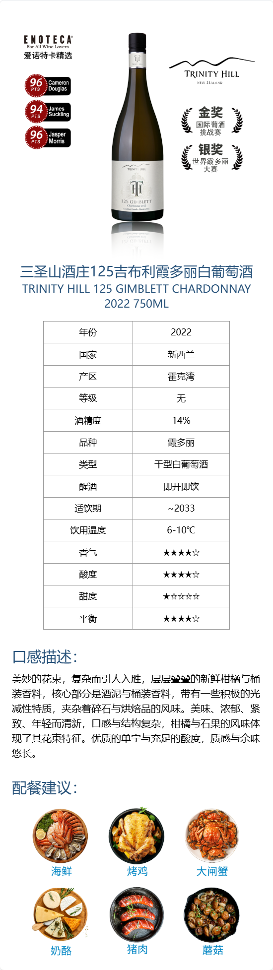 三圣山酒庄125吉布利霞多丽白葡萄酒 2022 750ml