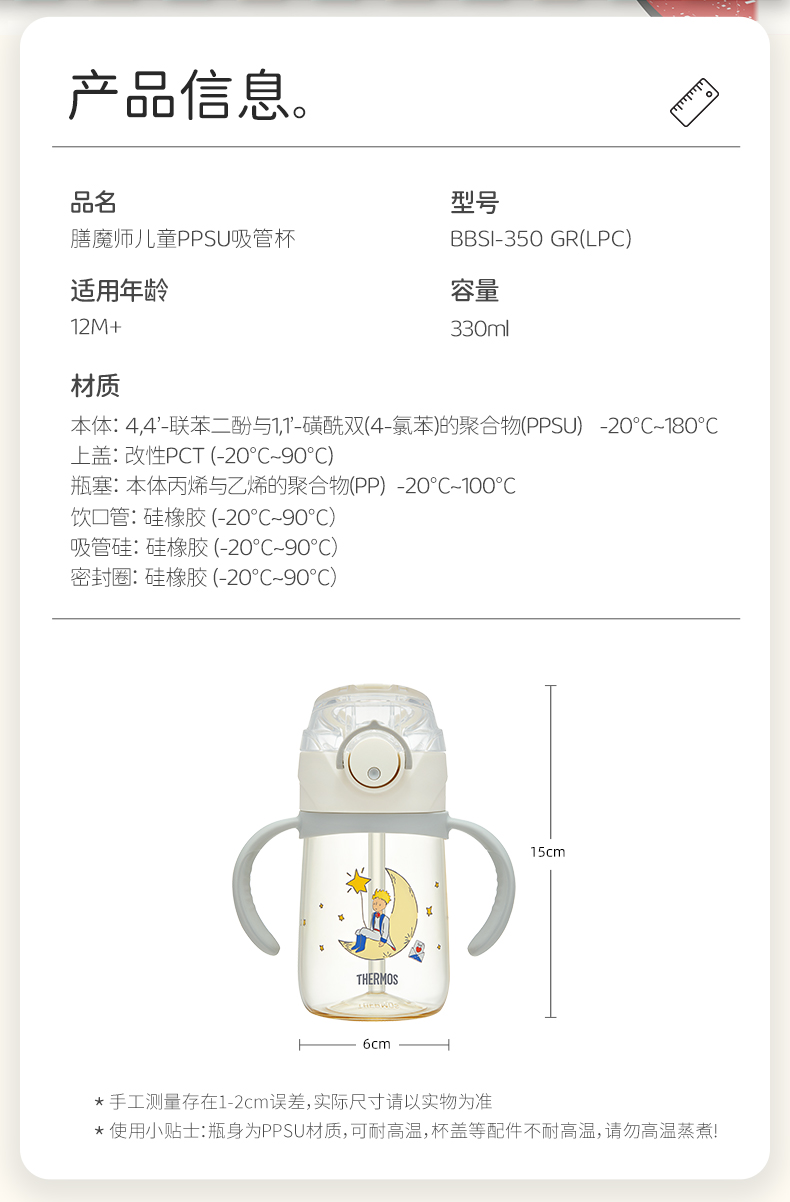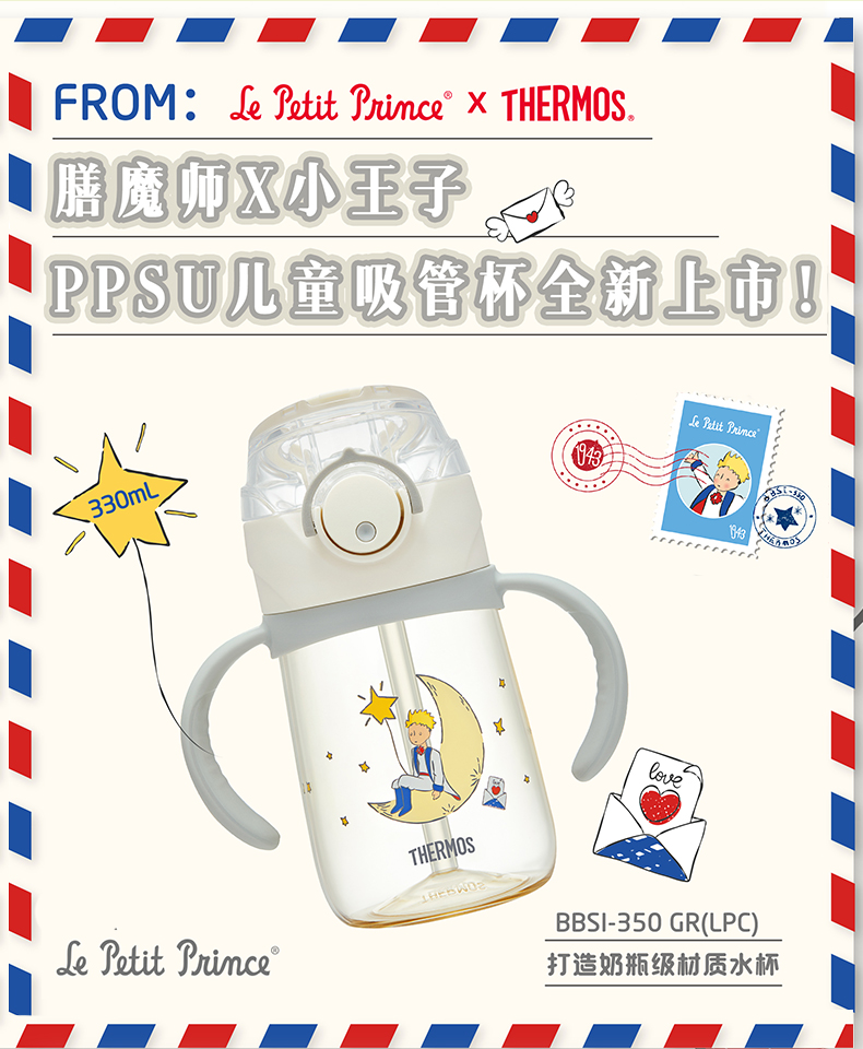 9楼母婴生活馆 【24年春夏新款】膳魔师小王子联名ppsu儿童双把手吸管杯330mL 吊牌价:218元 活动价:188元