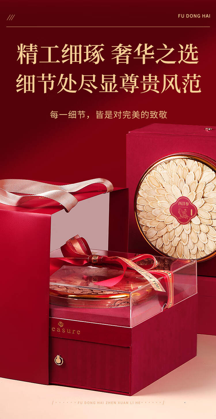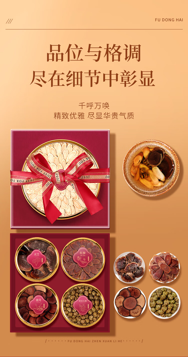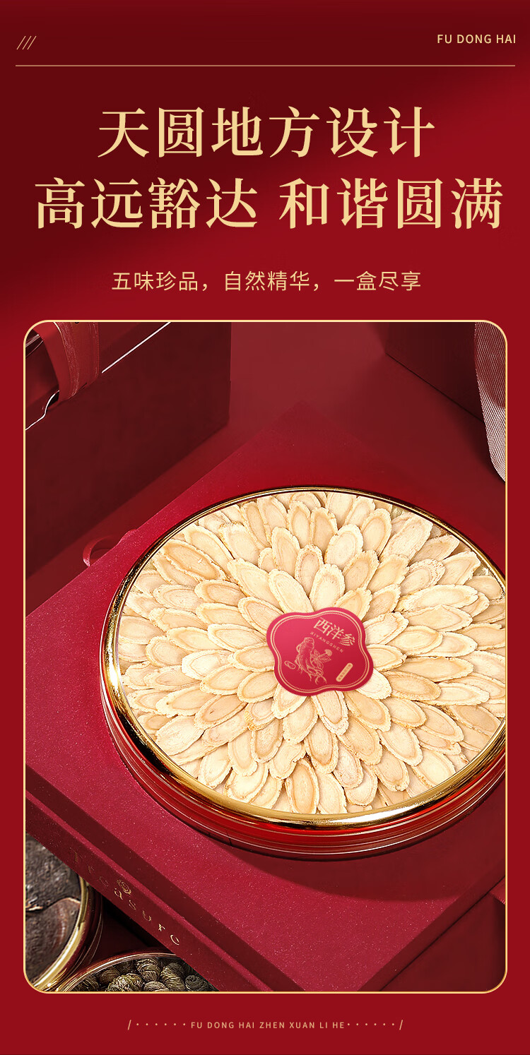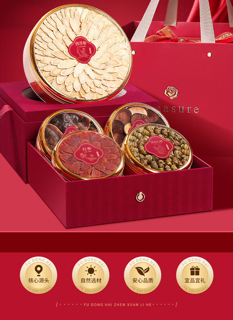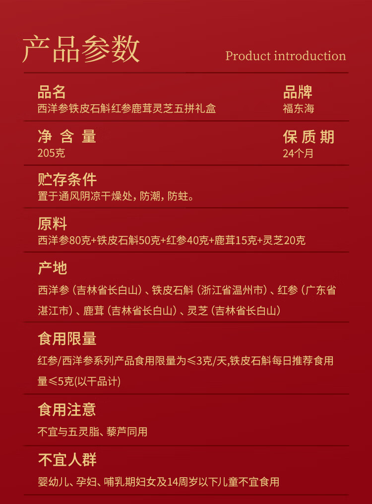 福东海 西洋参片石斛灵芝鹿茸红参礼盒205克 滋补品礼品送长辈