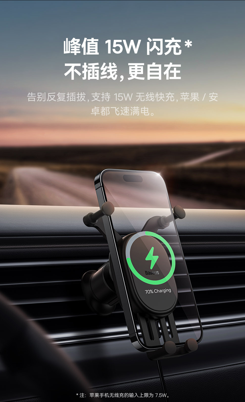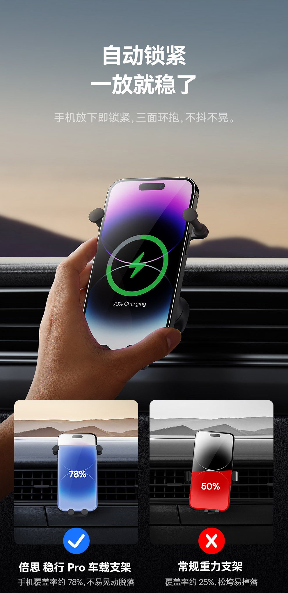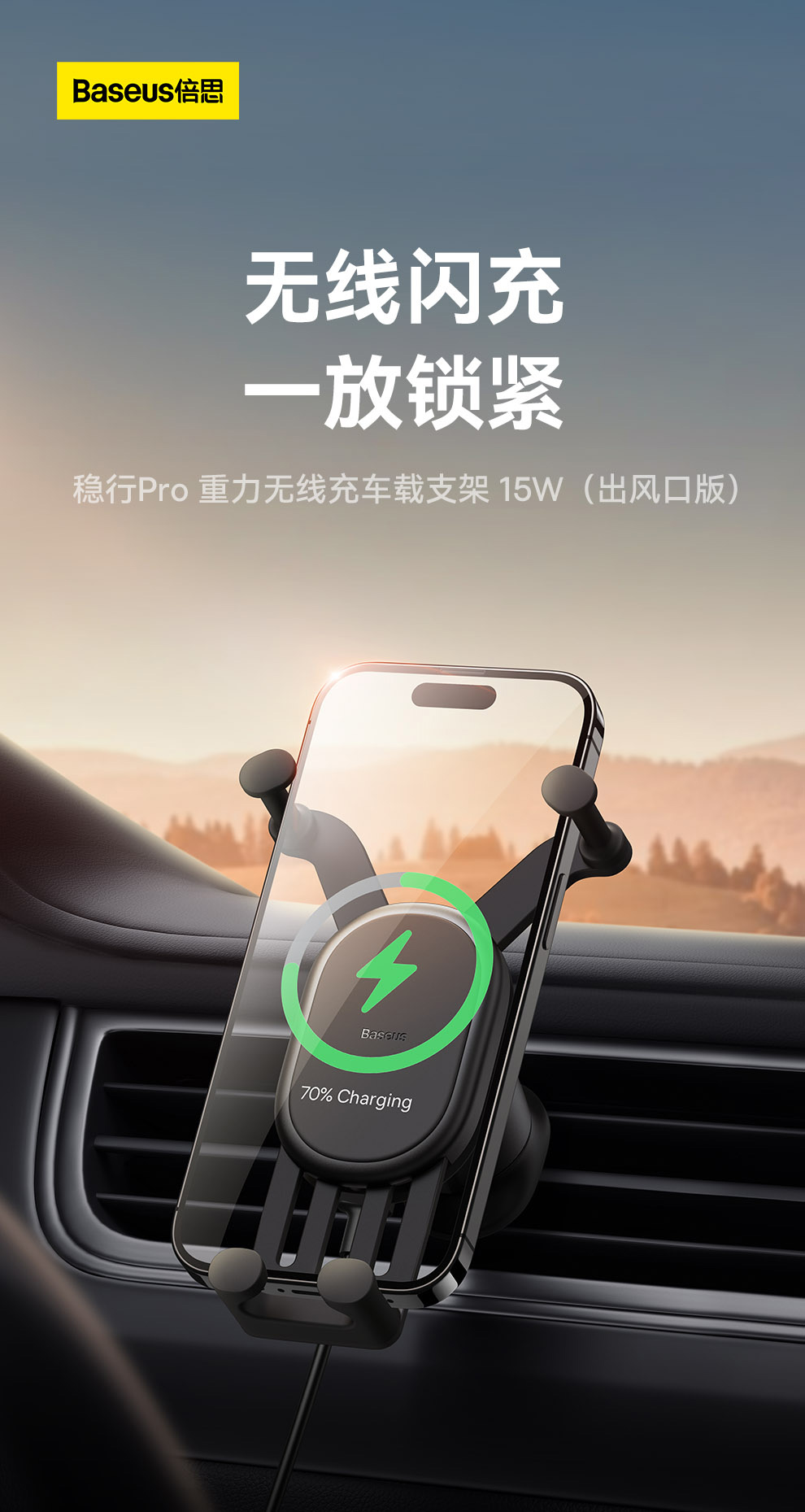 倍思 稳行Pro 重力无线充车载支架 15W(出风口版)