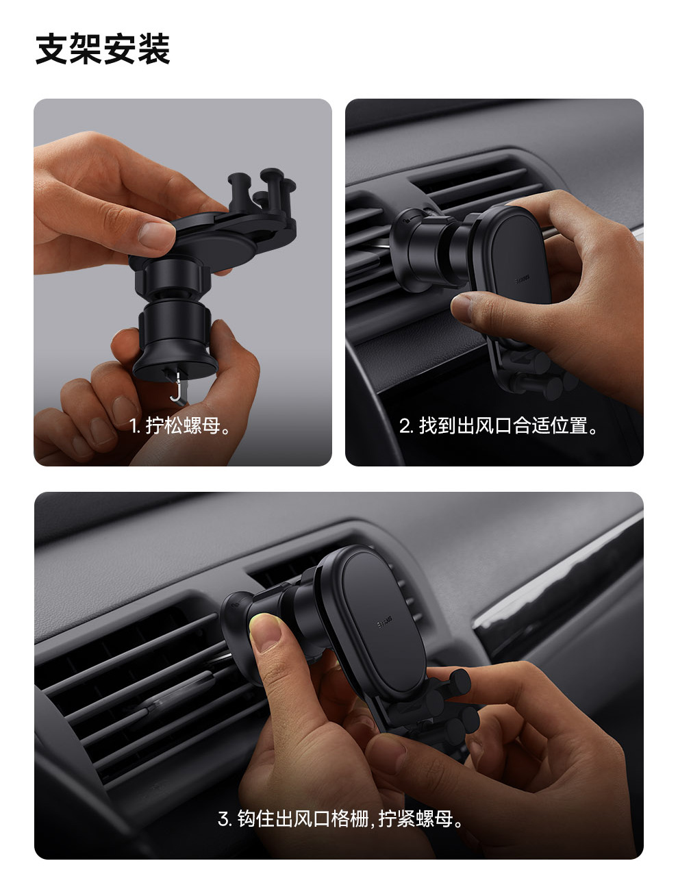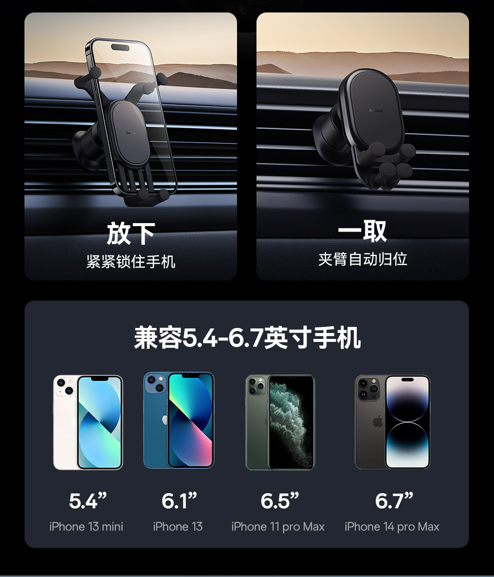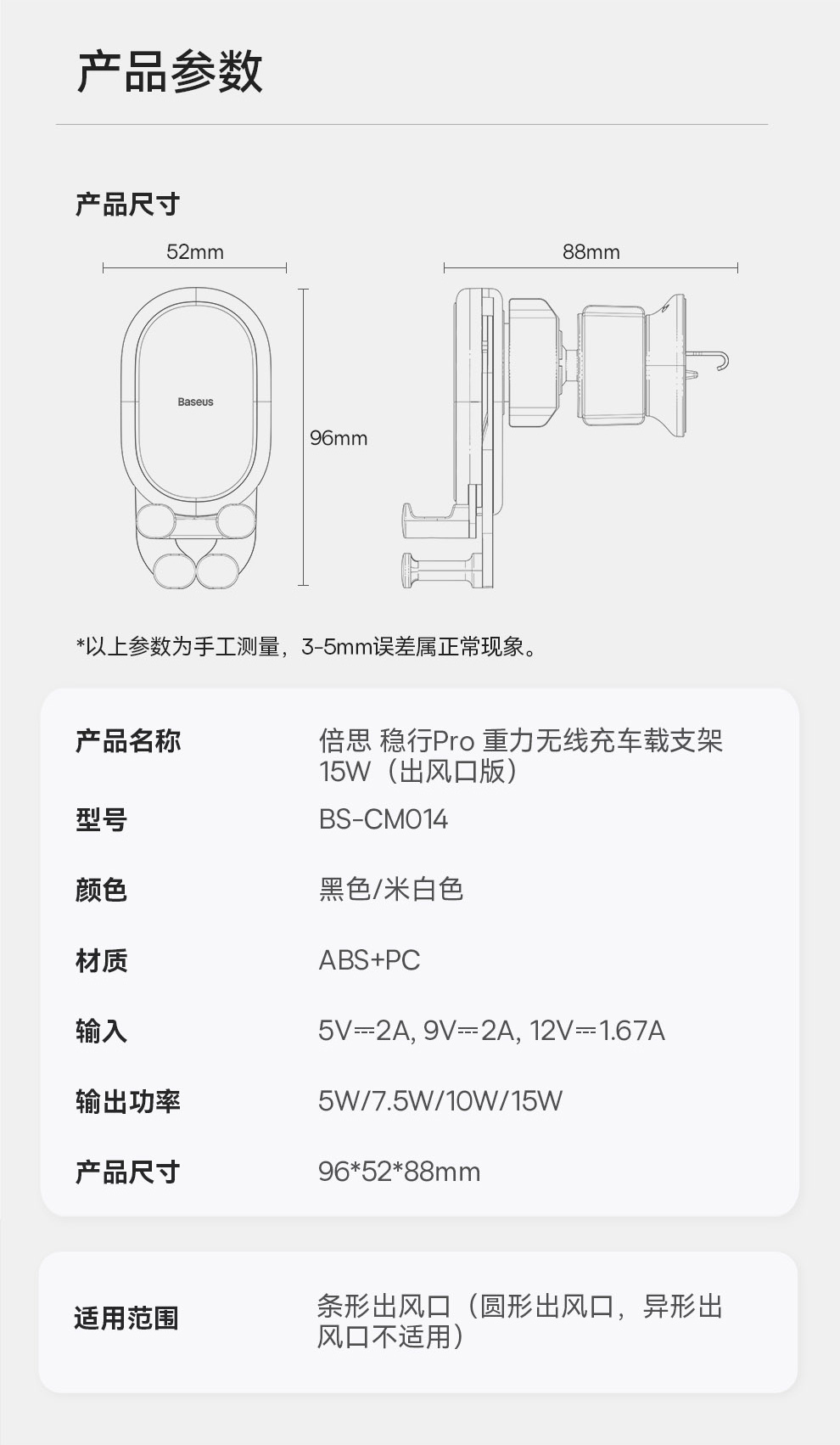 倍思 稳行Pro 重力无线充车载支架 15W(出风口版)