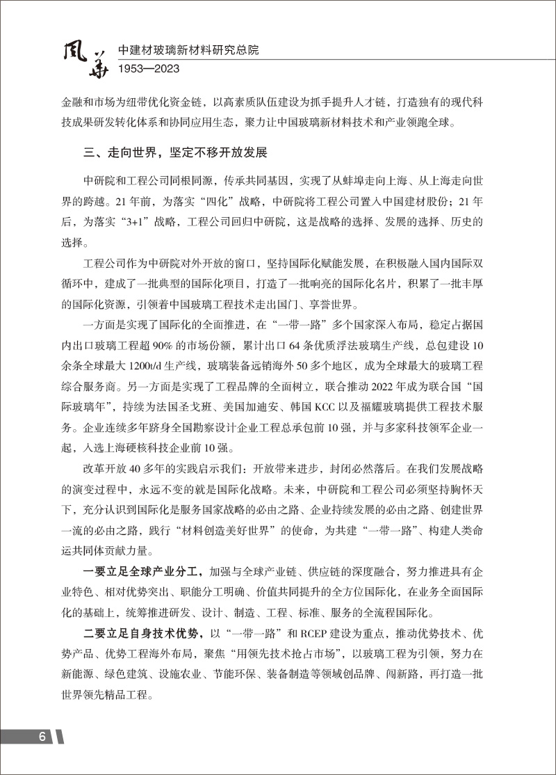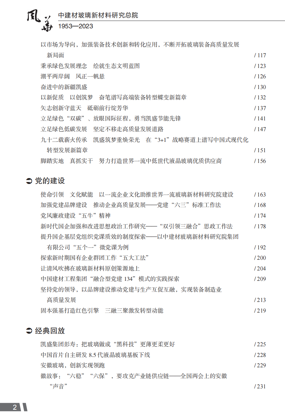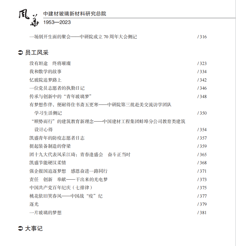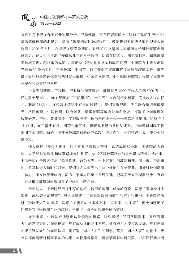 风华 : 中建材玻璃新材料研究总院 : 1953—2023 / 彭寿主编.中国建材工业出版社2024.8ISBN 9787516038963