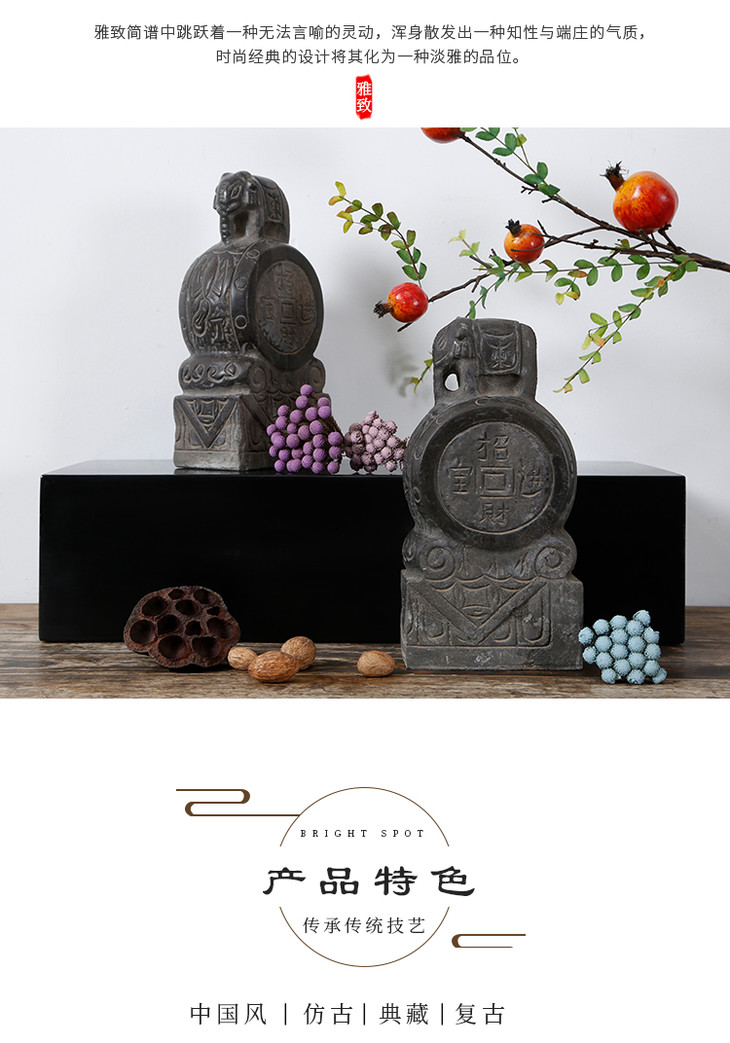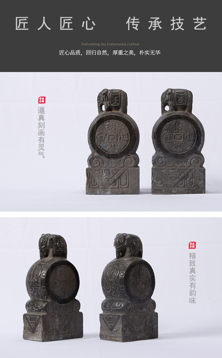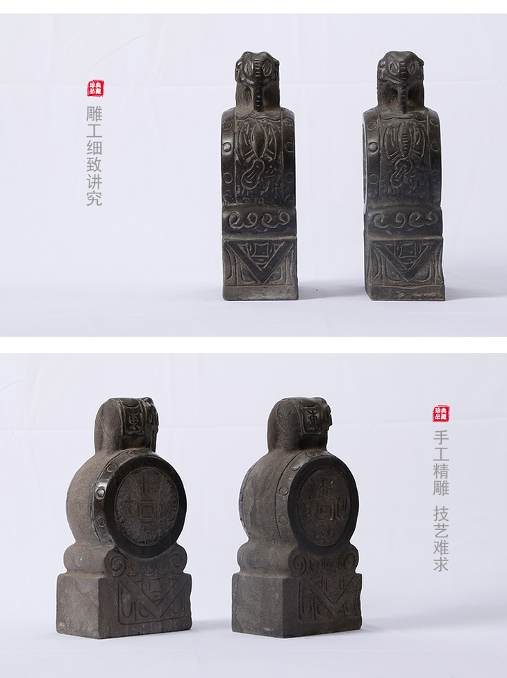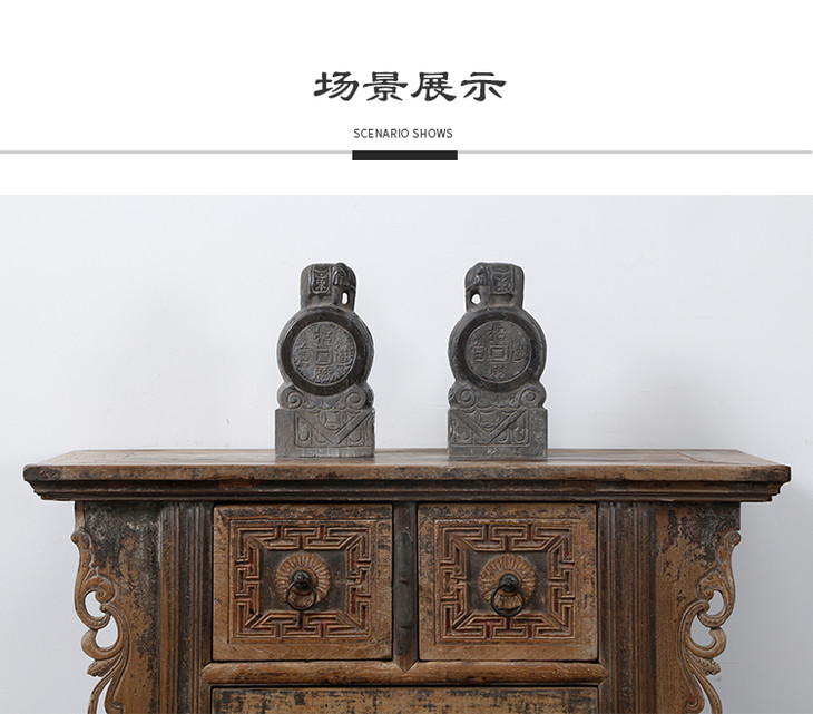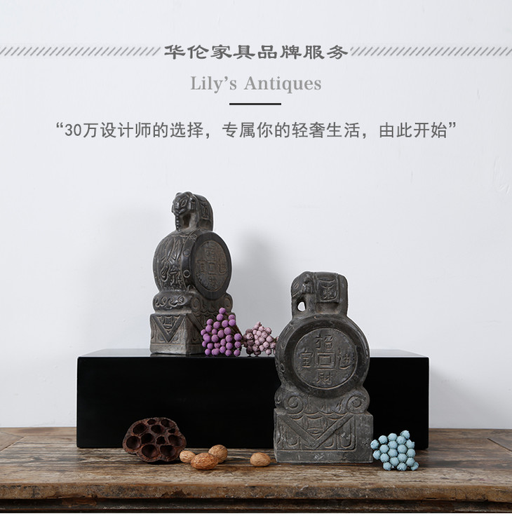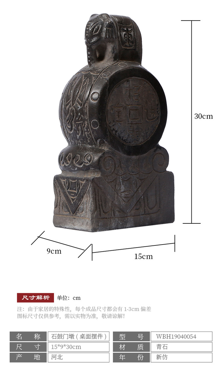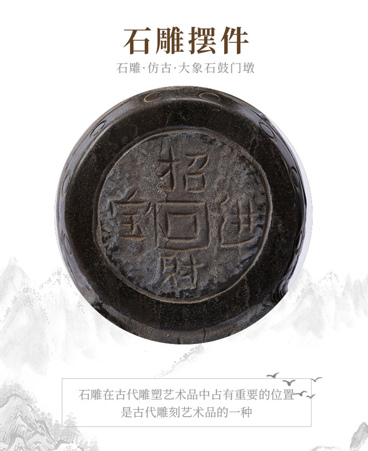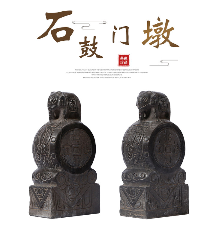 青石雕刻大象石鼓门墩摆件软装饰品(对)