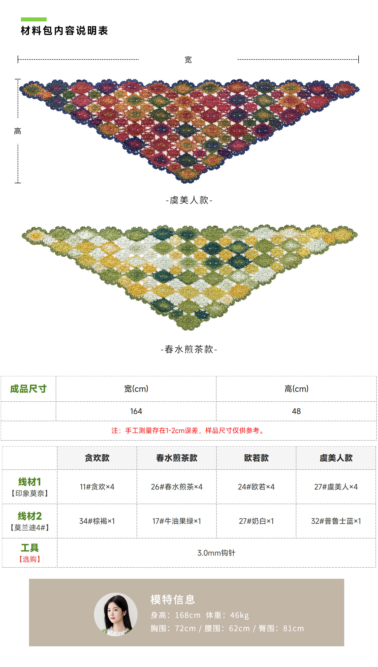 苏苏姐家羽欣三角披肩手工diy钩针羊毛编织毛线团材料包
