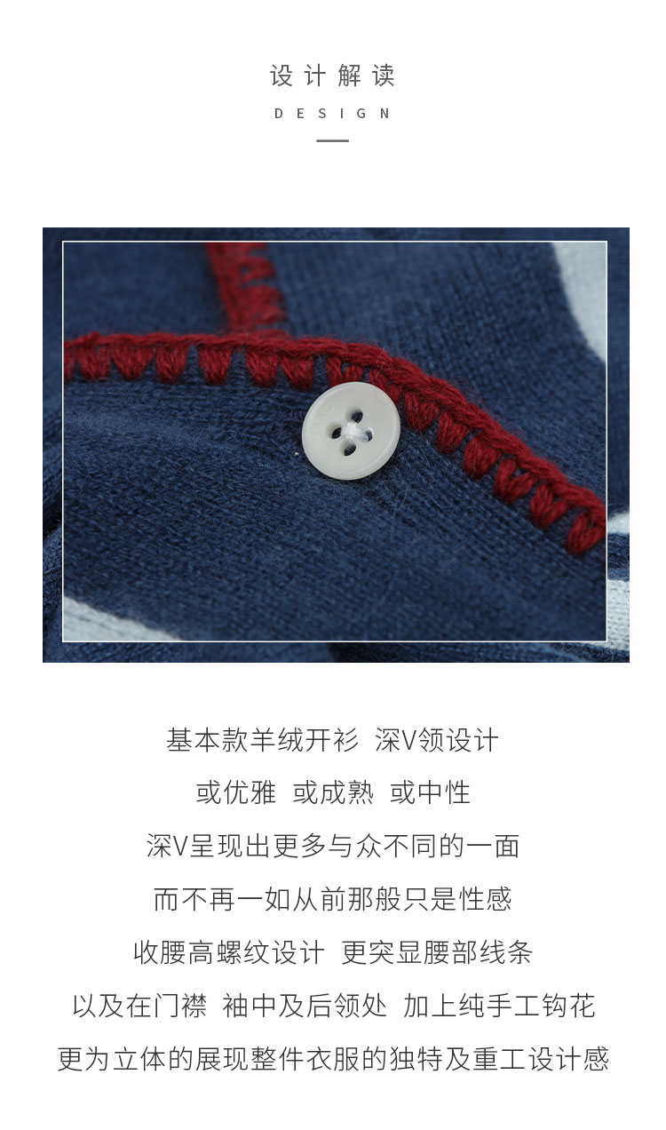 V领手工钩花羊绒女开衫 SJF93W105N