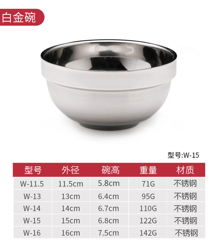 馨家道W-15不锈钢双层白金碗防烫饭碗15cm不锈钢色 商品图0