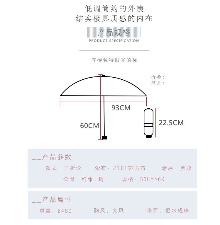 中国 YOCO 超扁黑胶遮光三折伞 晴雨可用