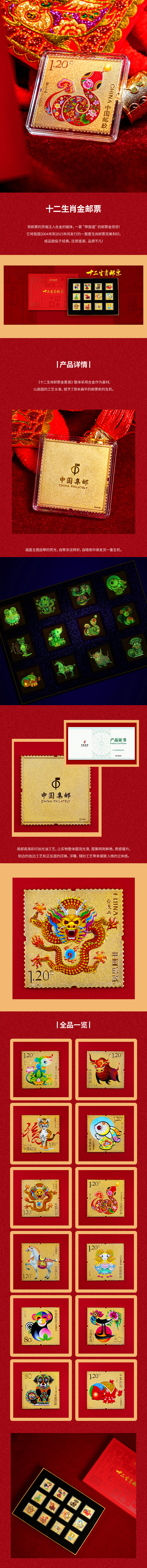中国集邮 十二生肖邮票金套装 带礼盒