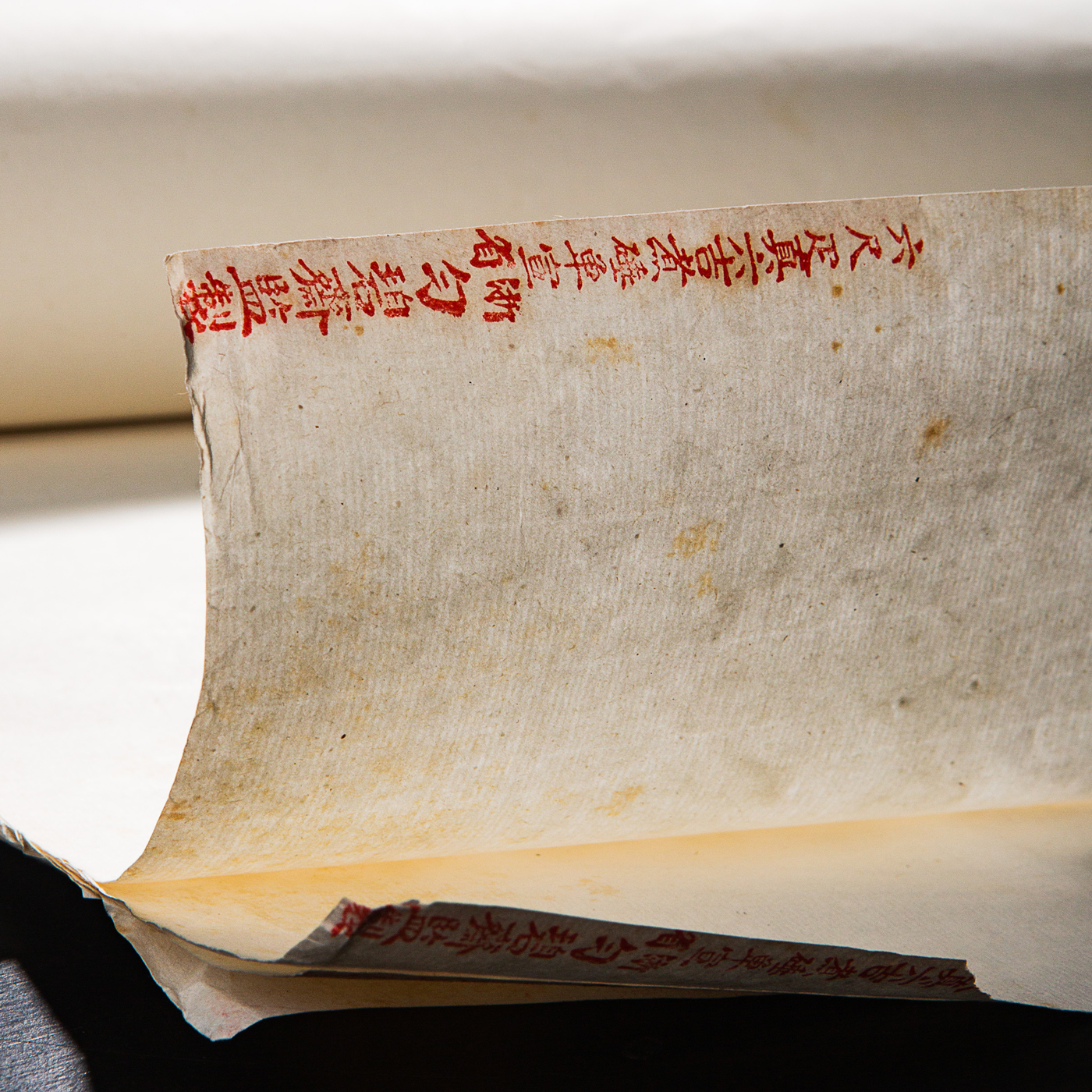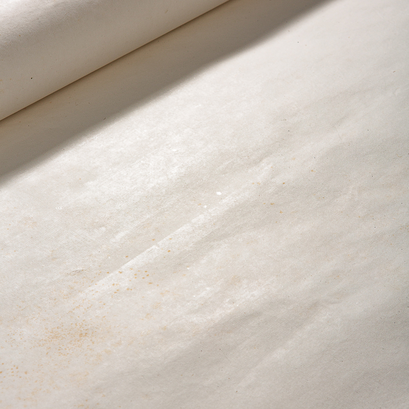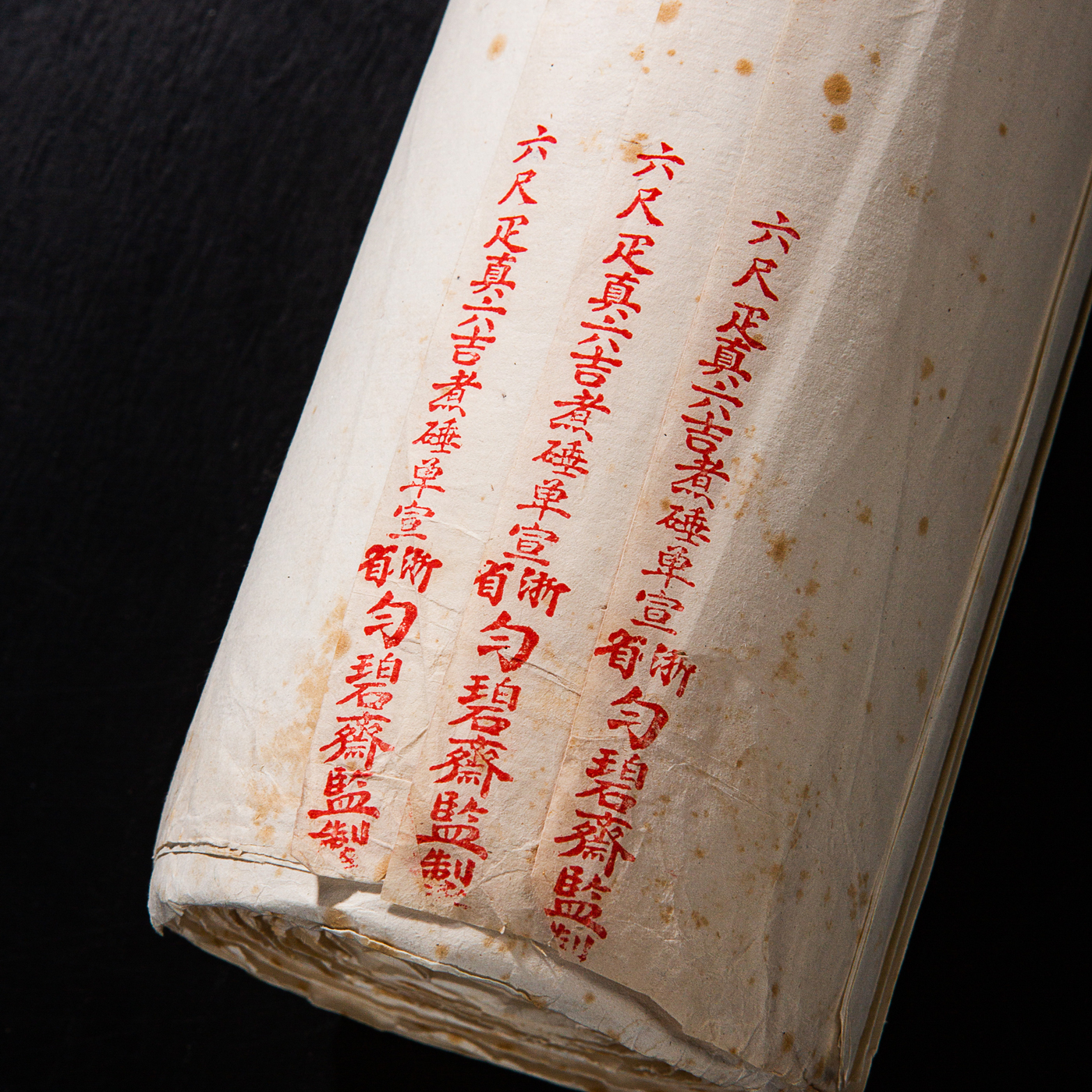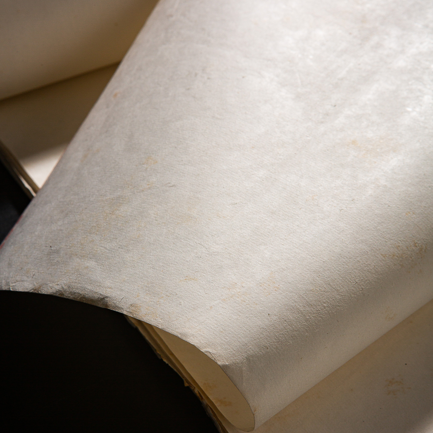 清代杭州匀碧斋制“六尺疋真六吉煮硾宣”,其质地莹润如玉,手感细腻丝滑,帘纹精美,用料扎实,色泽温和古朴,宝光外放。此纸极罕见,收藏价值极高。