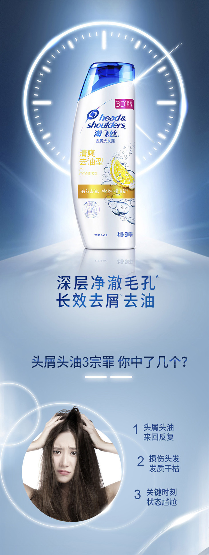 海飞丝清爽去油洗发露(200ml)【20005184】
