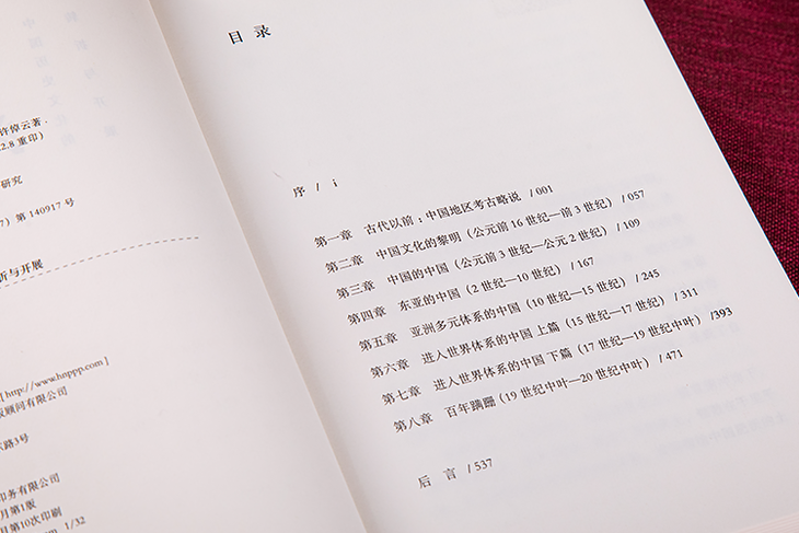 中国文化的黎明、中国的中国、东亚的中国、亚洲多元体系的中国、进入世界体系的中国、百年蹒跚