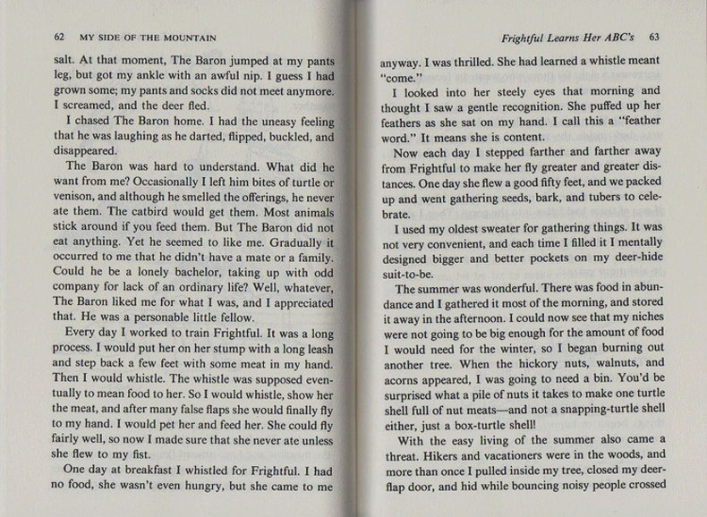 Sam Gribley is terribly unhappy living in his family’s crowed New York City apartment. So, armed with just the bare necessities—a penknife, a ball of cord, some flint and steel, and the clothes on his back—he runs away to the mountains. There, Sam must rely on his own ingenuity and the resources of the great outdoors to survive—and he discovers a side of himself he never knew existed.