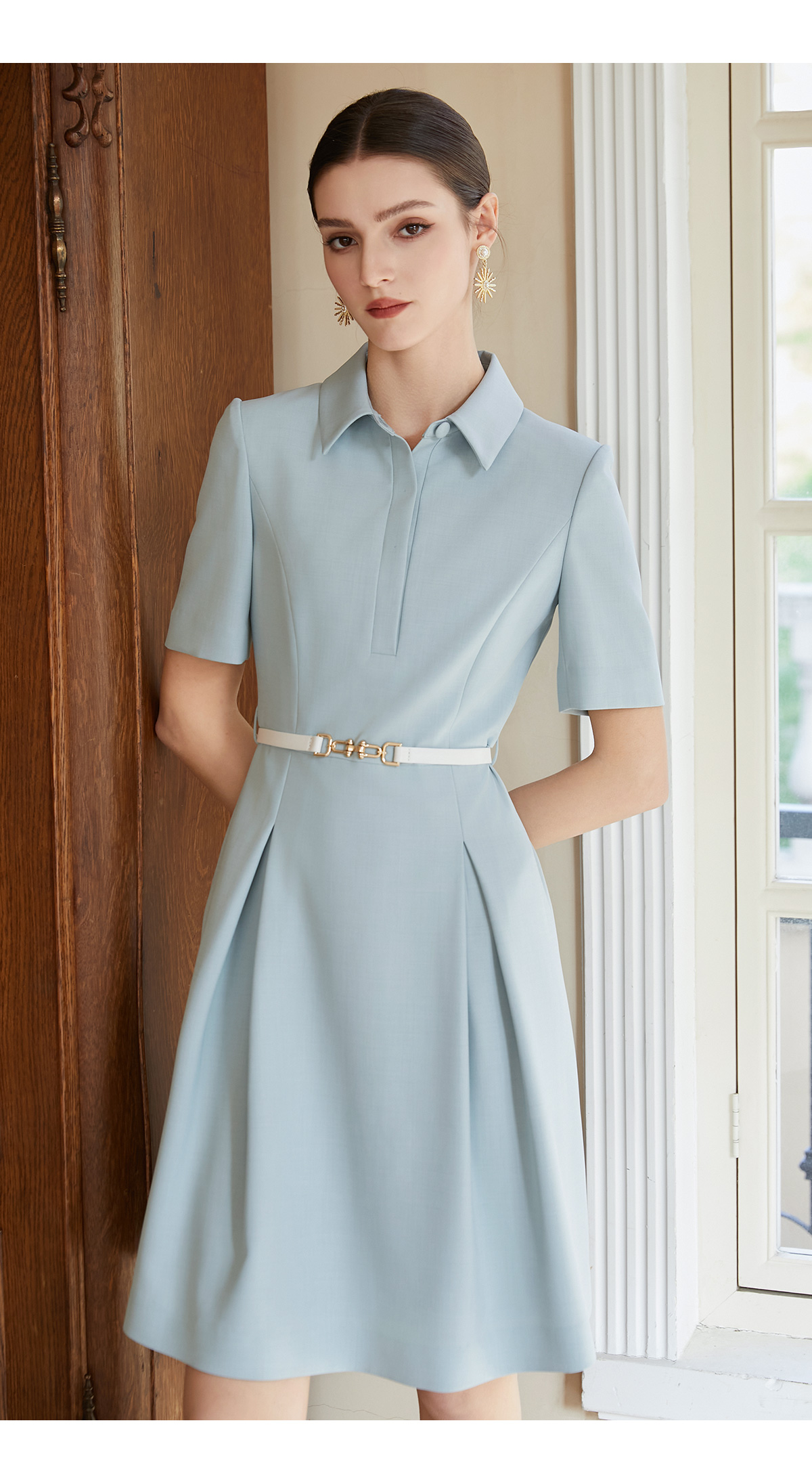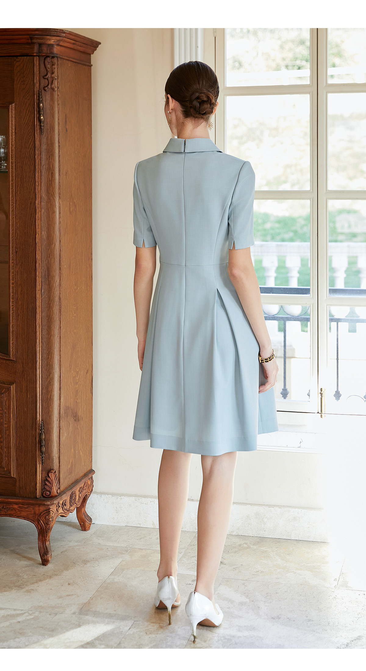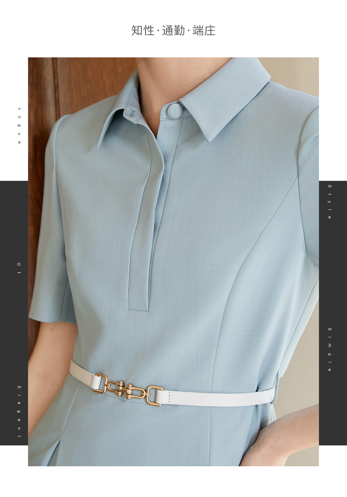 AD蓝色连衣裙2024新款女夏季短袖立领衬衫裙子上班族通勤职业装