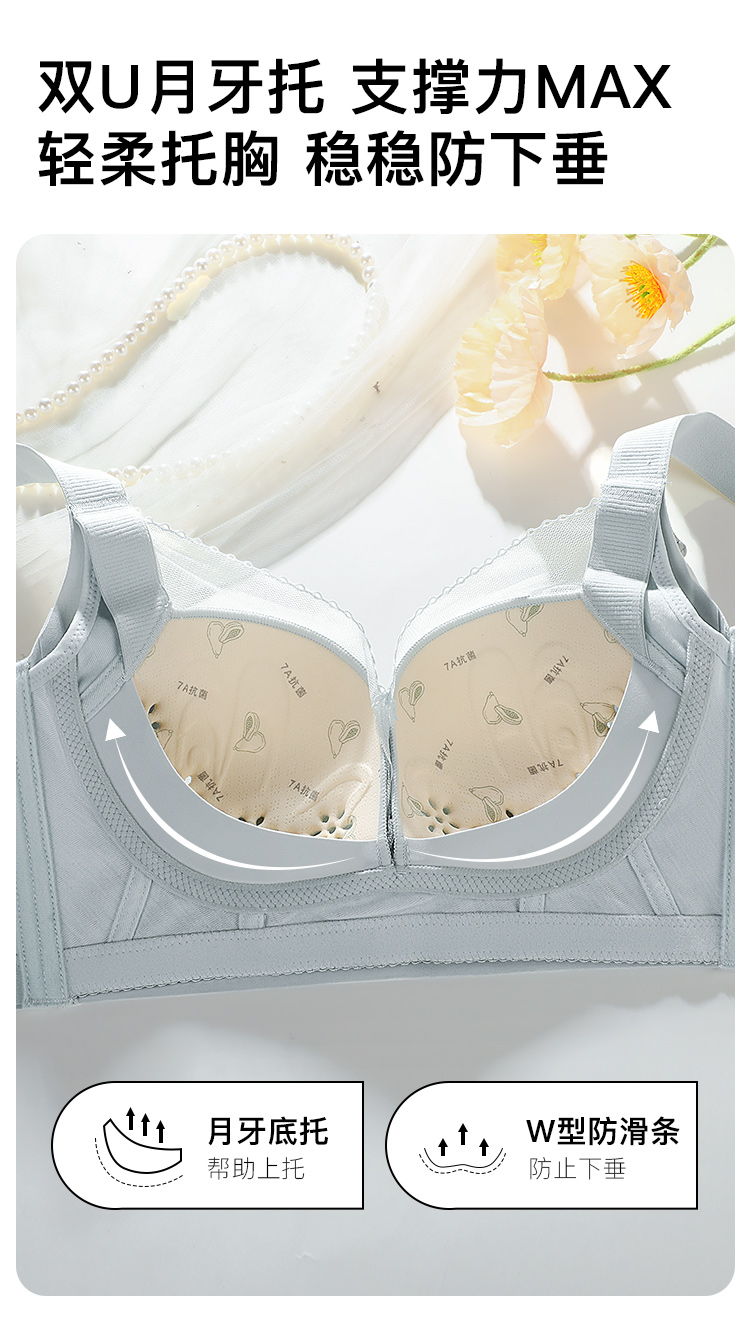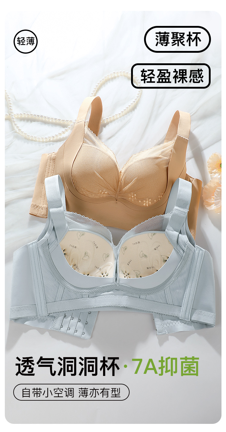 Z1-【75BC-90BC杯】 【大胸显小】【凉感透气洞洞杯】夏季薄款无痕内衣女大胸显小防下垂收副乳文胸 明玉映霞