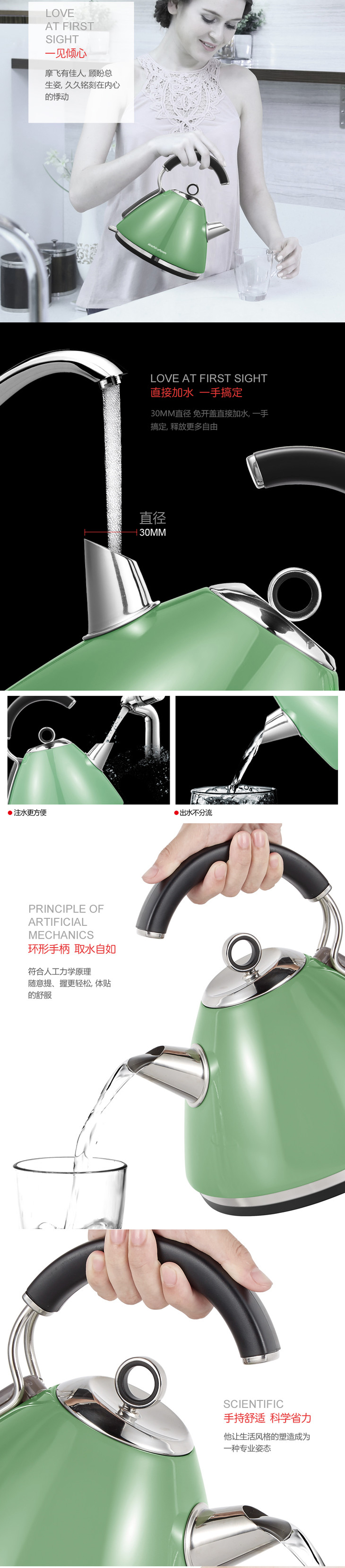 英国摩飞| 舒淇同款 明星代言电热水壶MR7456A 电烧水壶家用英伦品质电热水壶不锈钢烧水壶(付款后三天内发货)