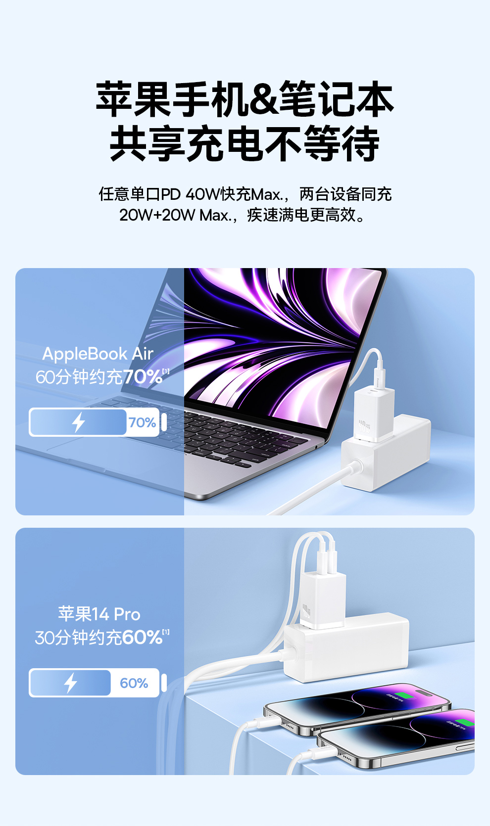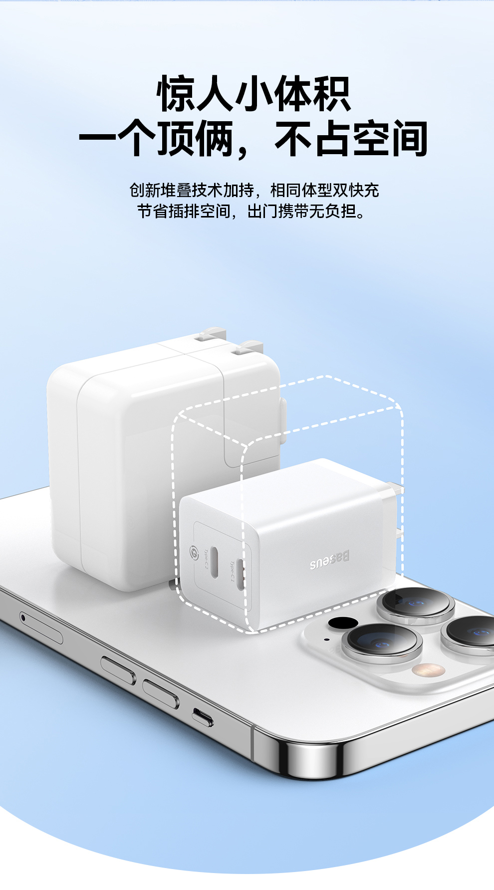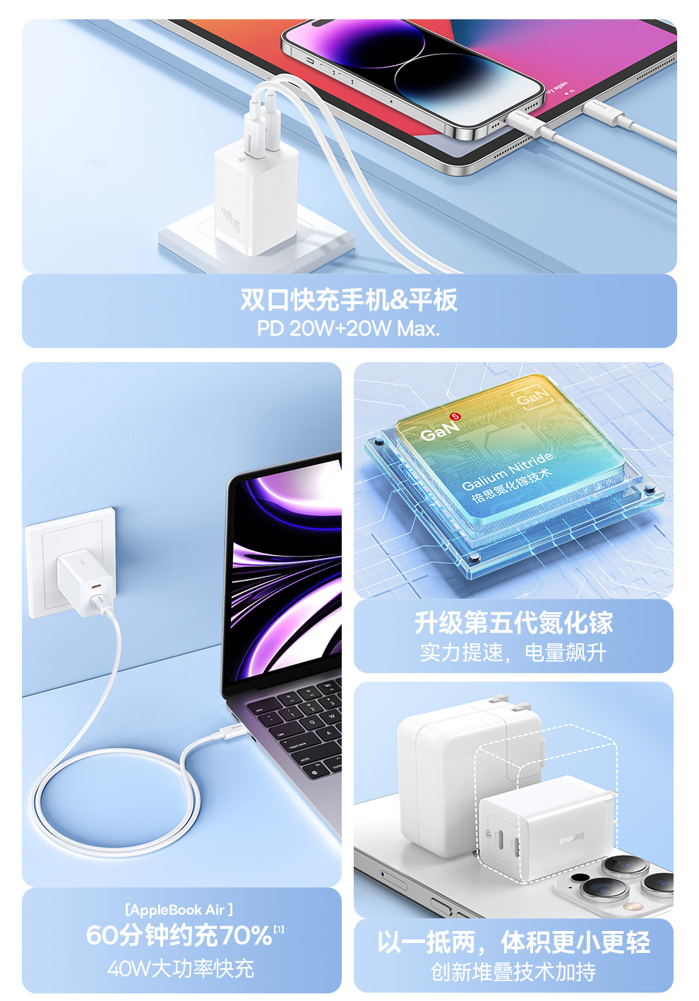 倍思 GaN5 Pro 40W 氮化镓快充充电器C+C
