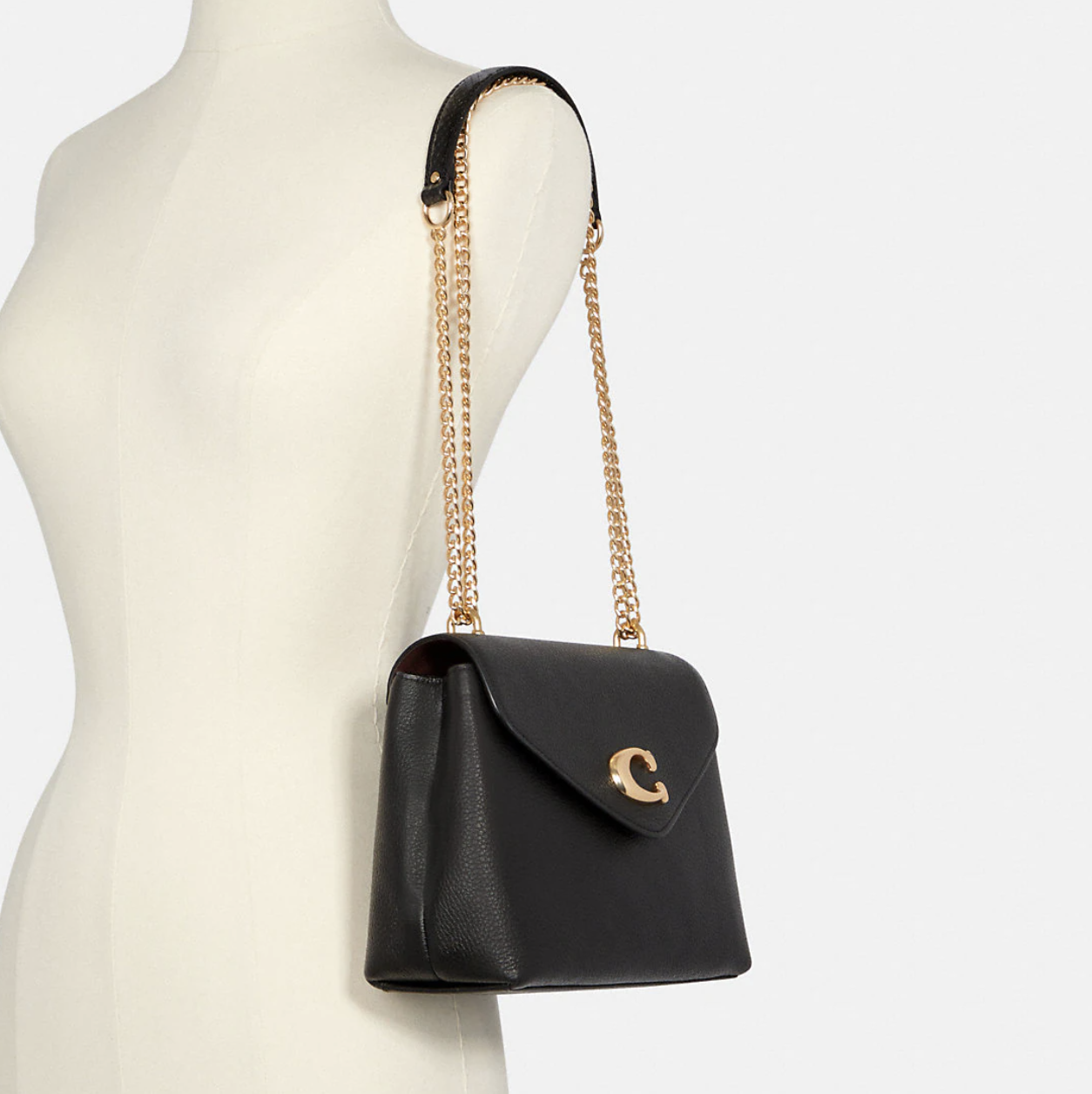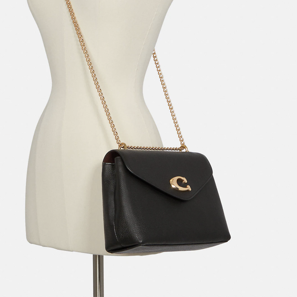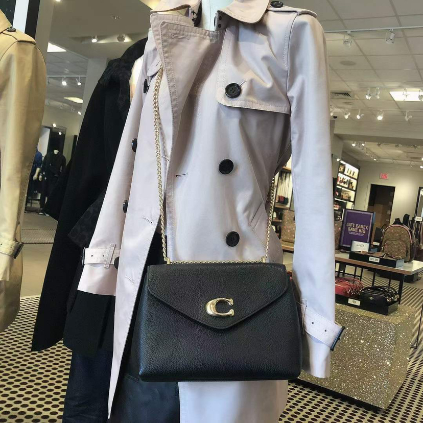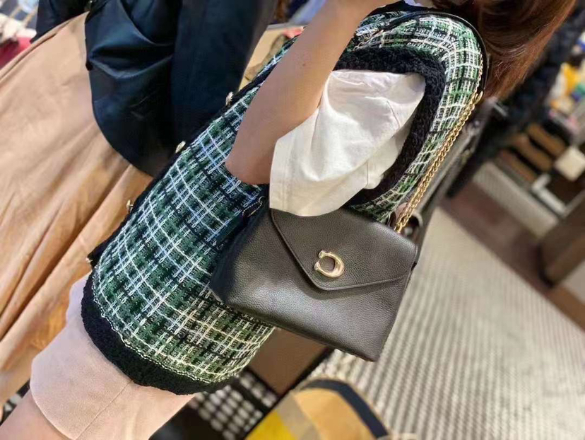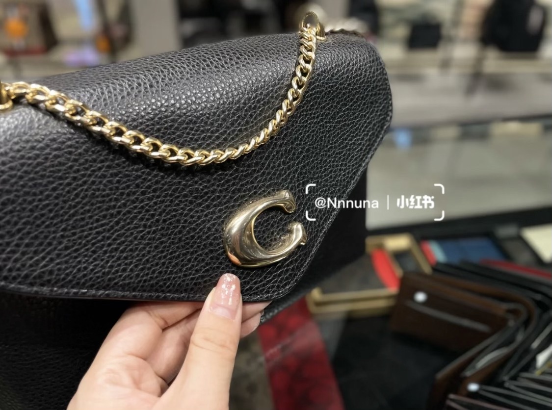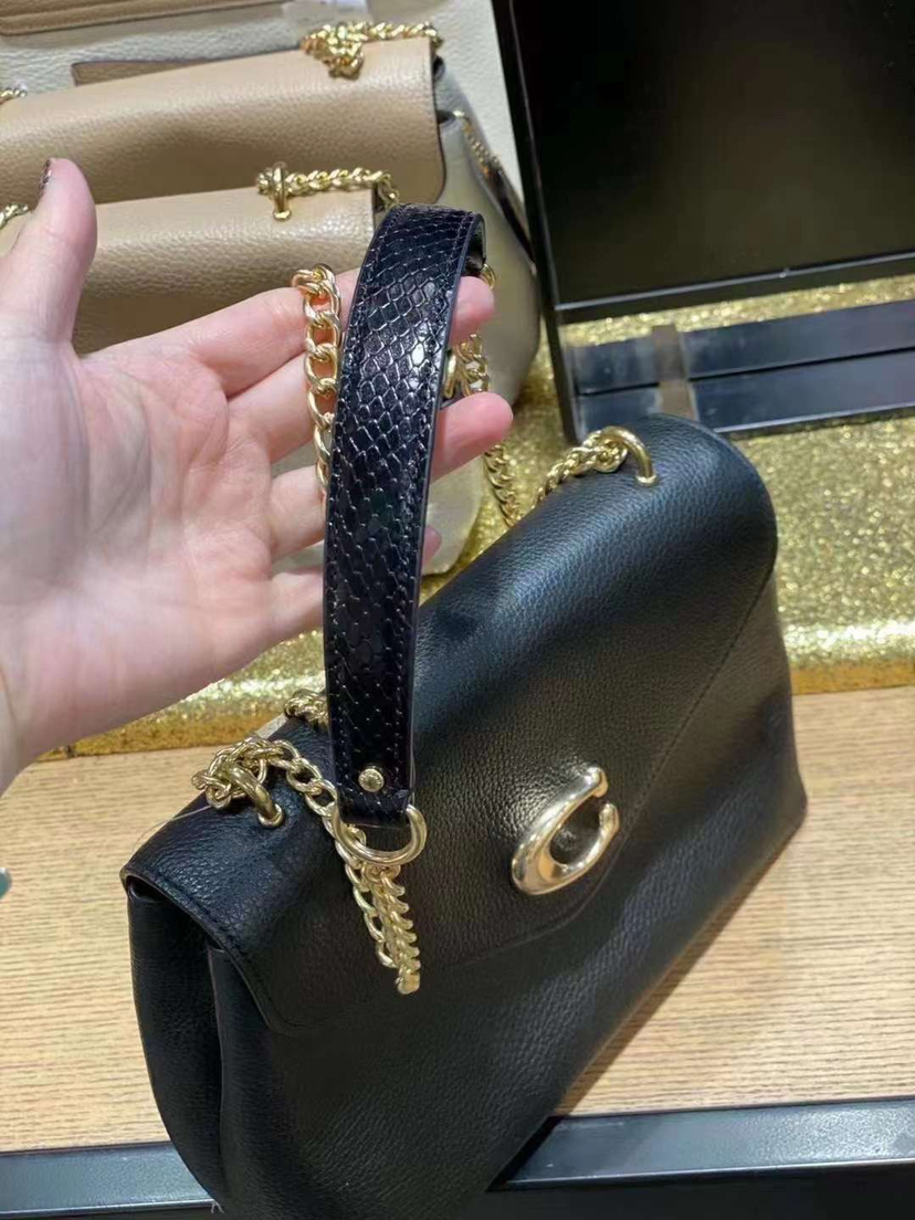 超经典Bug价!Coach Tammie C扣黑色牛皮单肩包链条包尺寸是:26 x 17 x 10cm