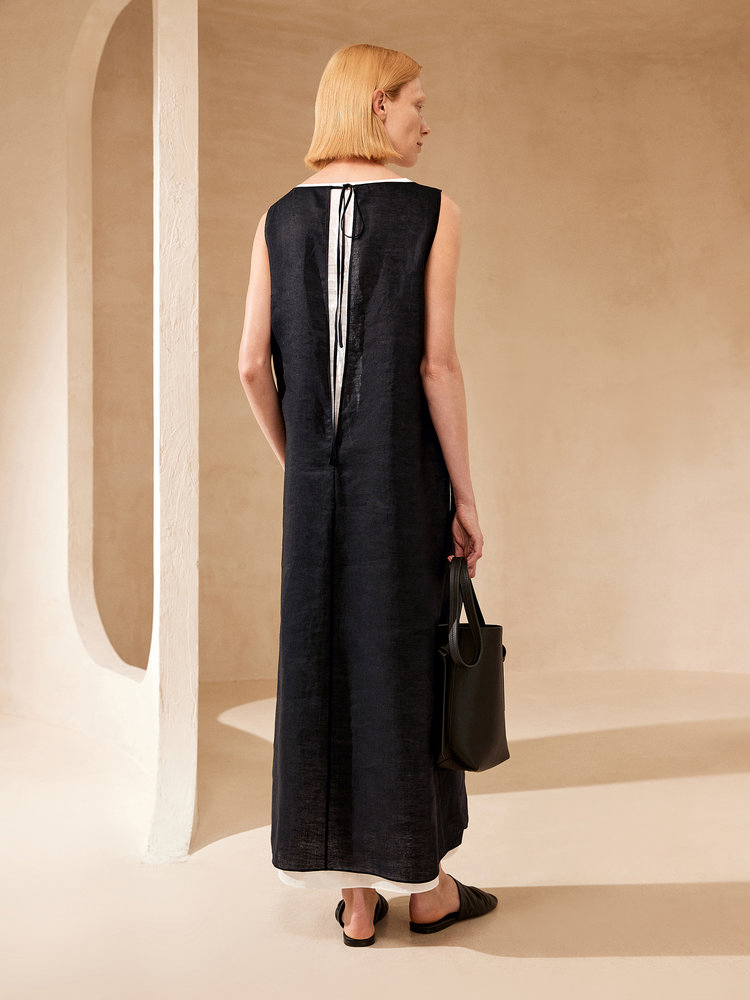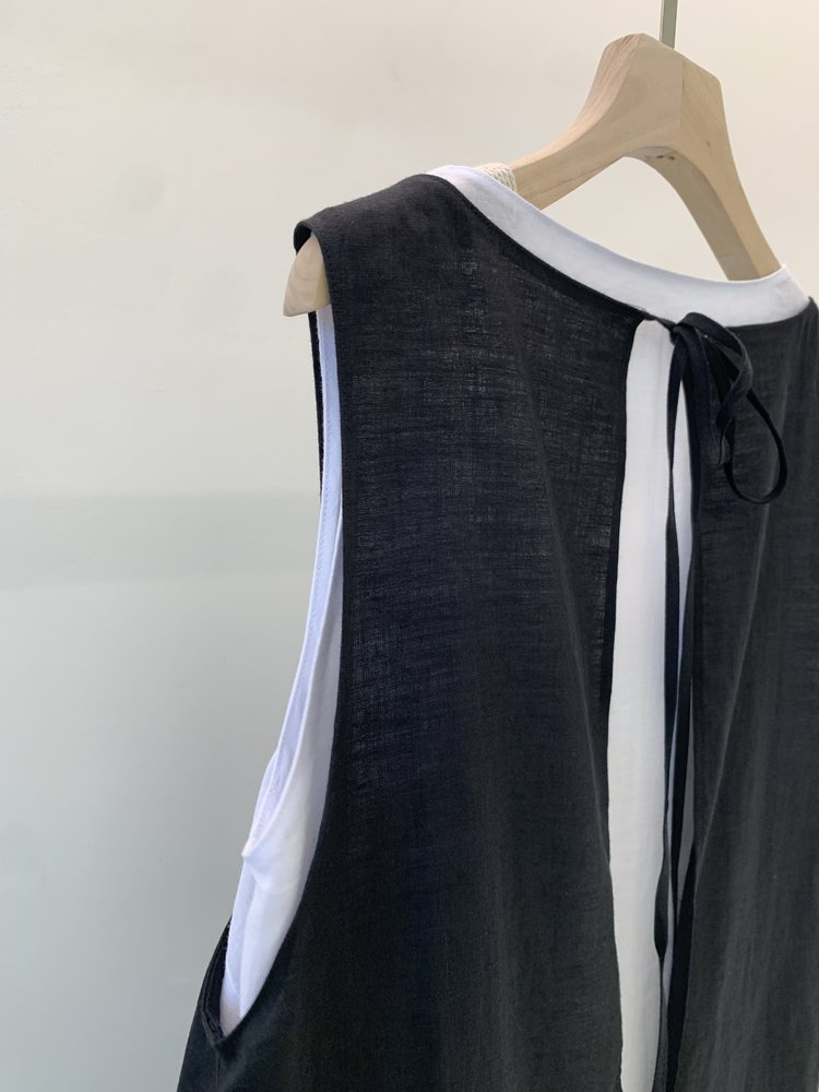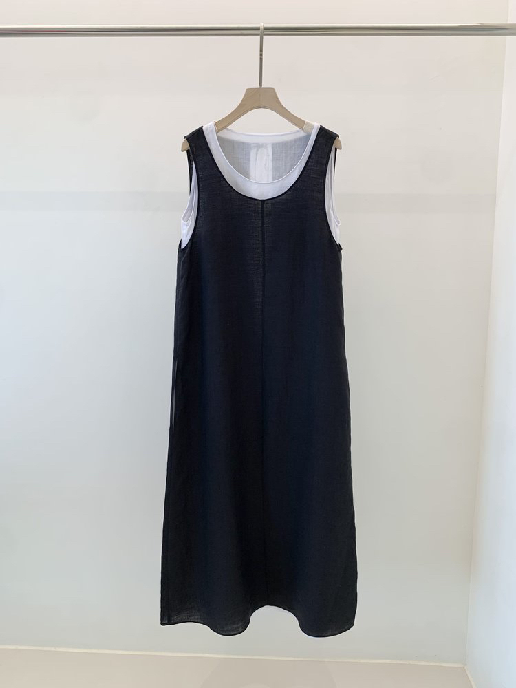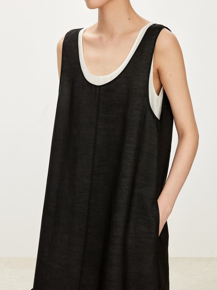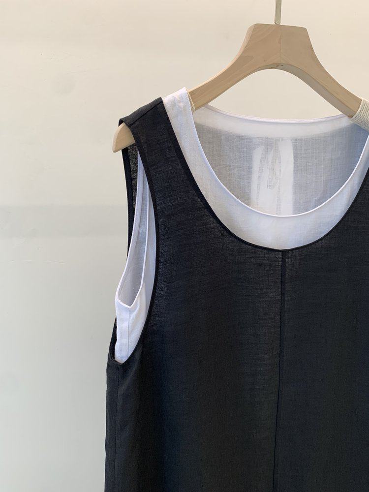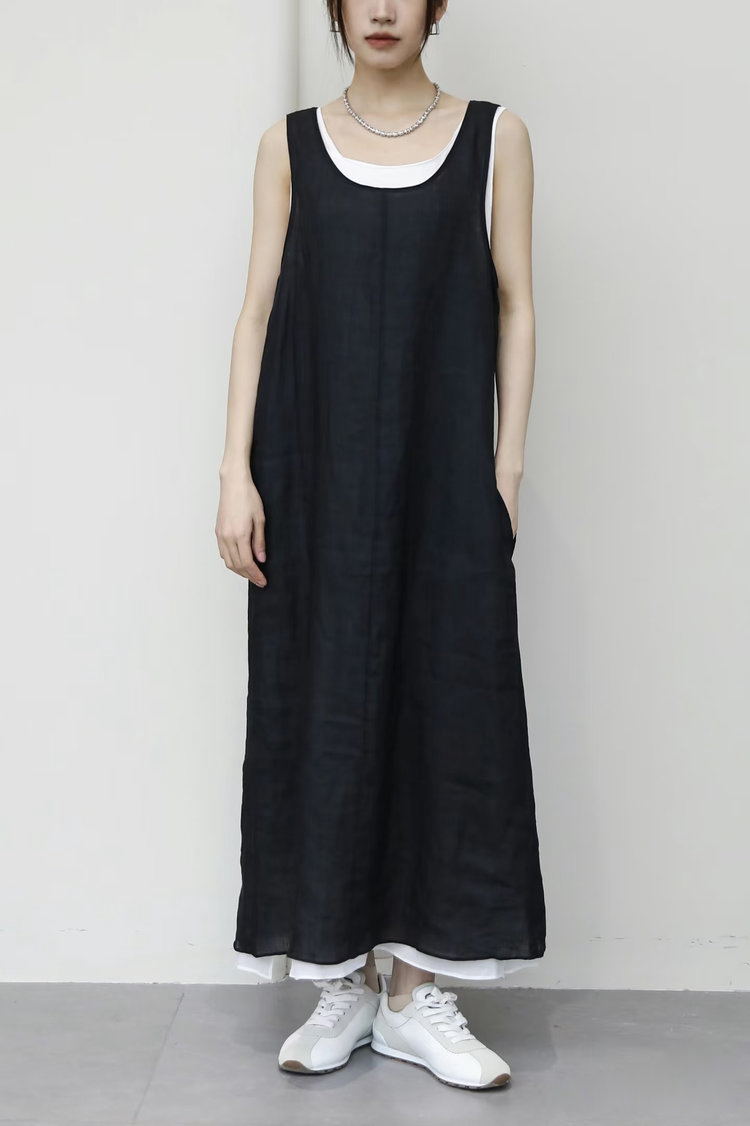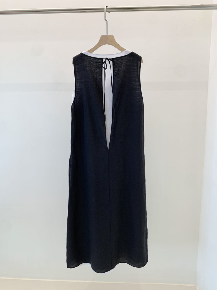 苎麻双层拼色两件套 极简风层次感2件套U领连衣裙 老钱风造型 苎麻面料 垂感十足 细支纱线高密织 叠穿美观不透 拆分穿简约有气质 双层U领设计