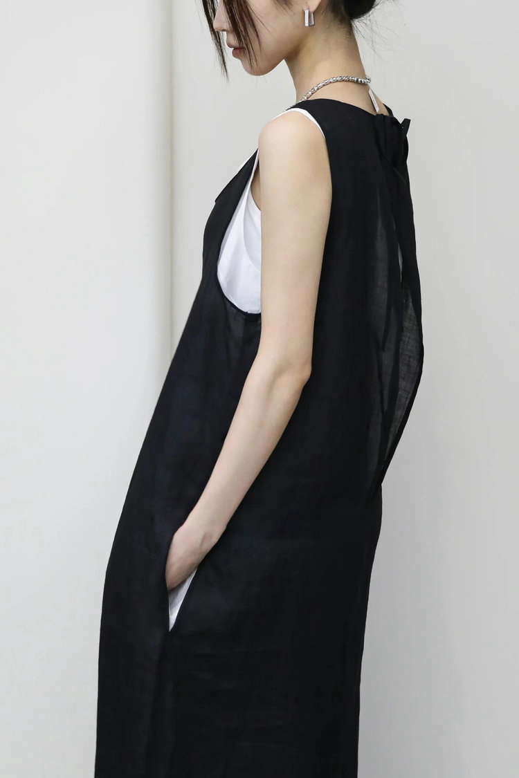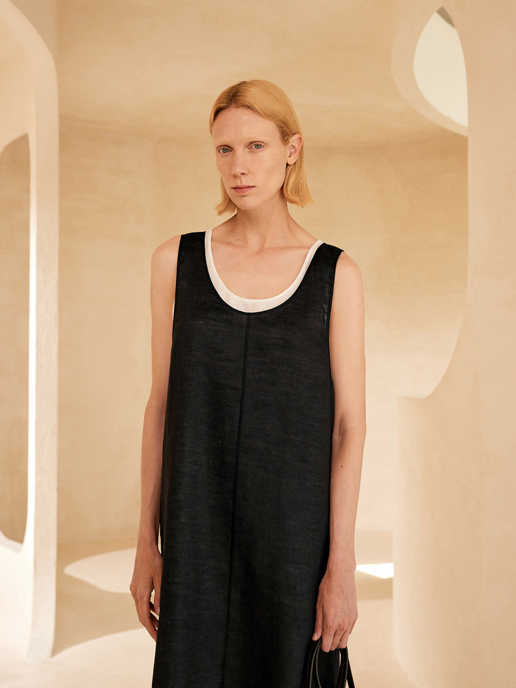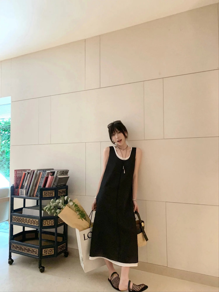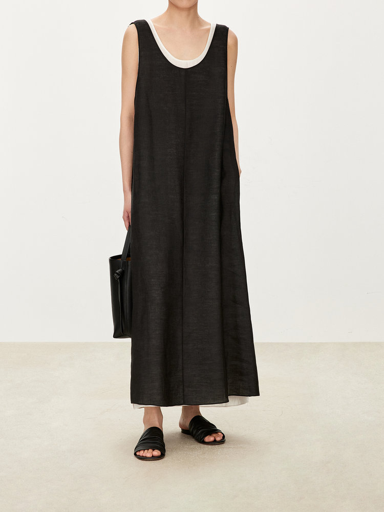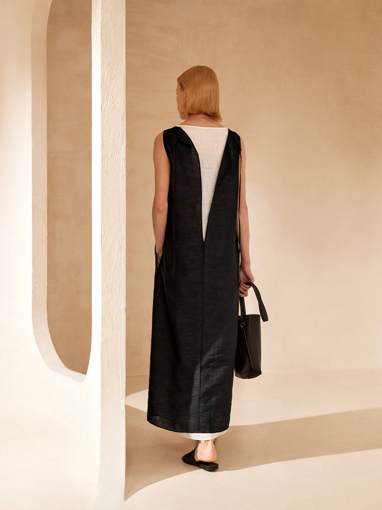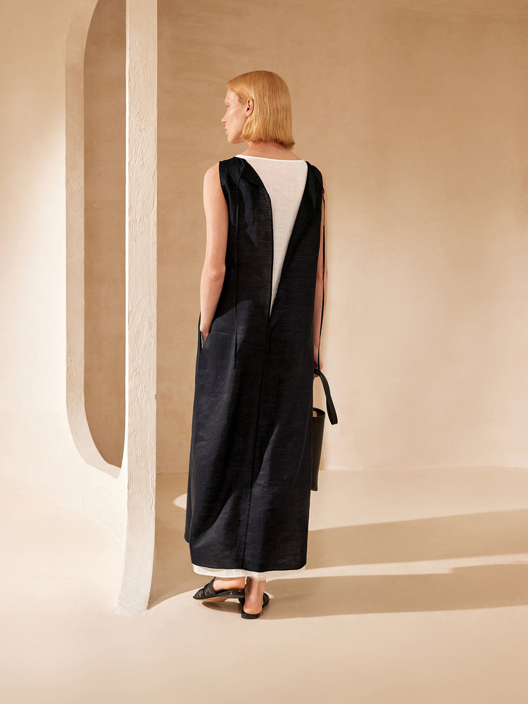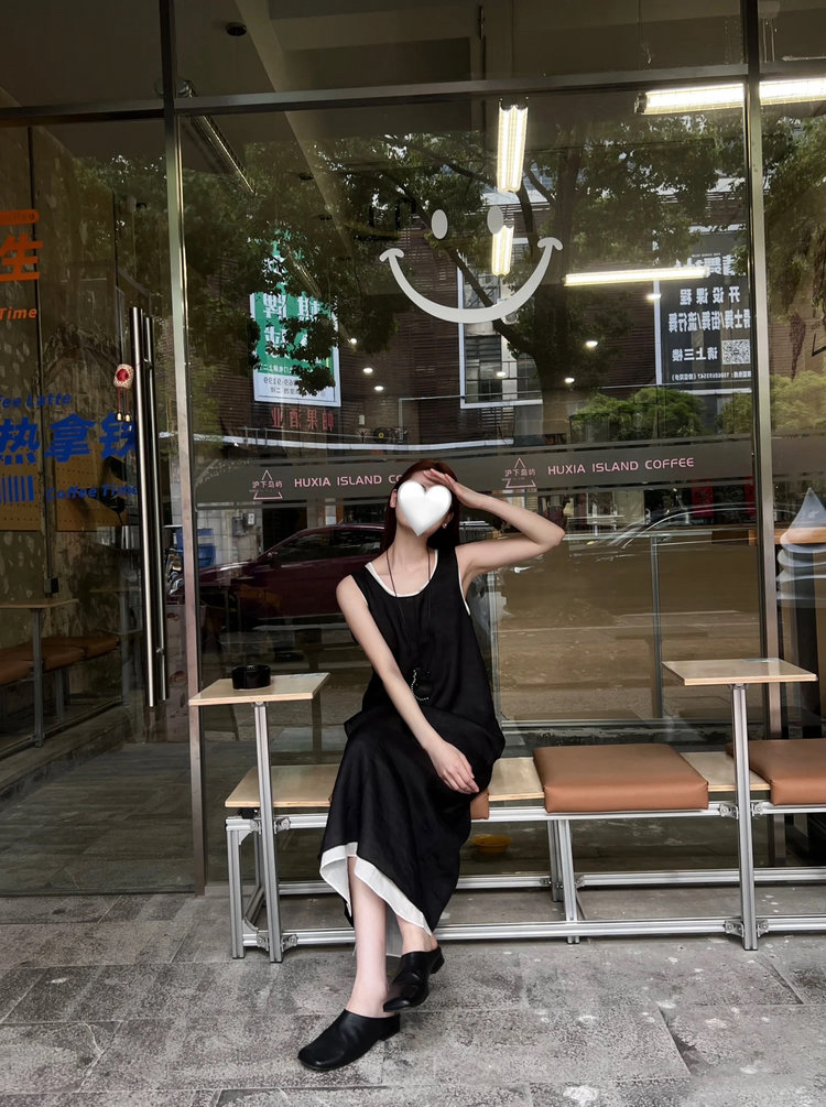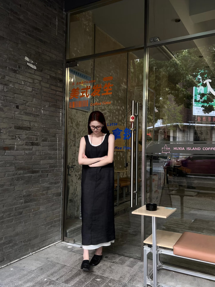 苎麻双层拼色两件套 极简风层次感2件套U领连衣裙 老钱风造型 苎麻面料 垂感十足 细支纱线高密织 叠穿美观不透 拆分穿简约有气质 双层U领设计