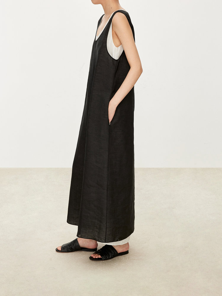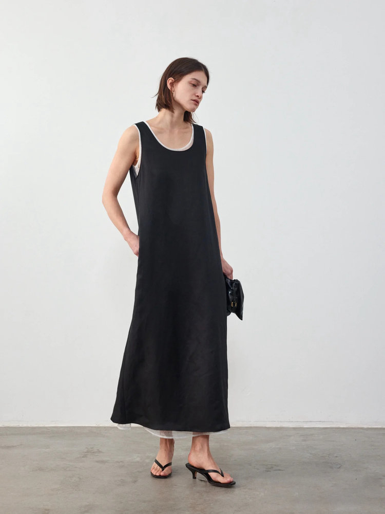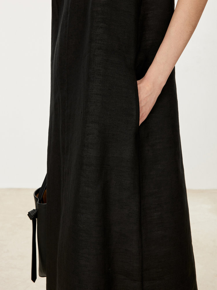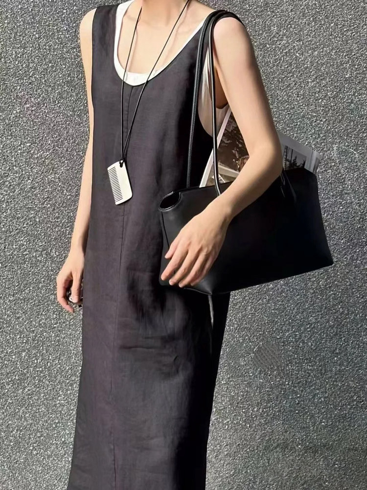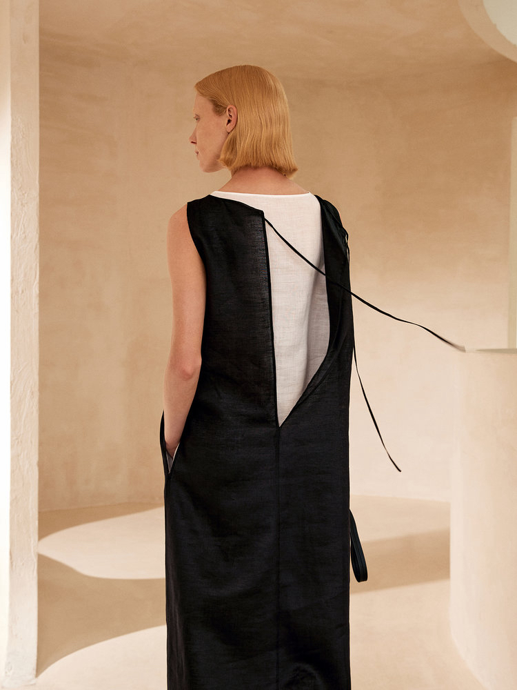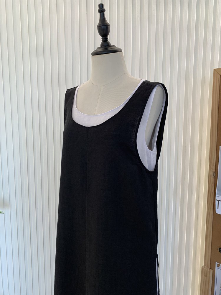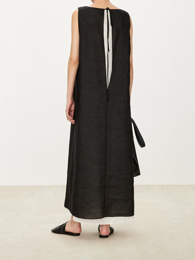 苎麻双层拼色两件套 极简风层次感2件套U领连衣裙 老钱风造型 苎麻面料 垂感十足 细支纱线高密织 叠穿美观不透 拆分穿简约有气质 双层U领设计