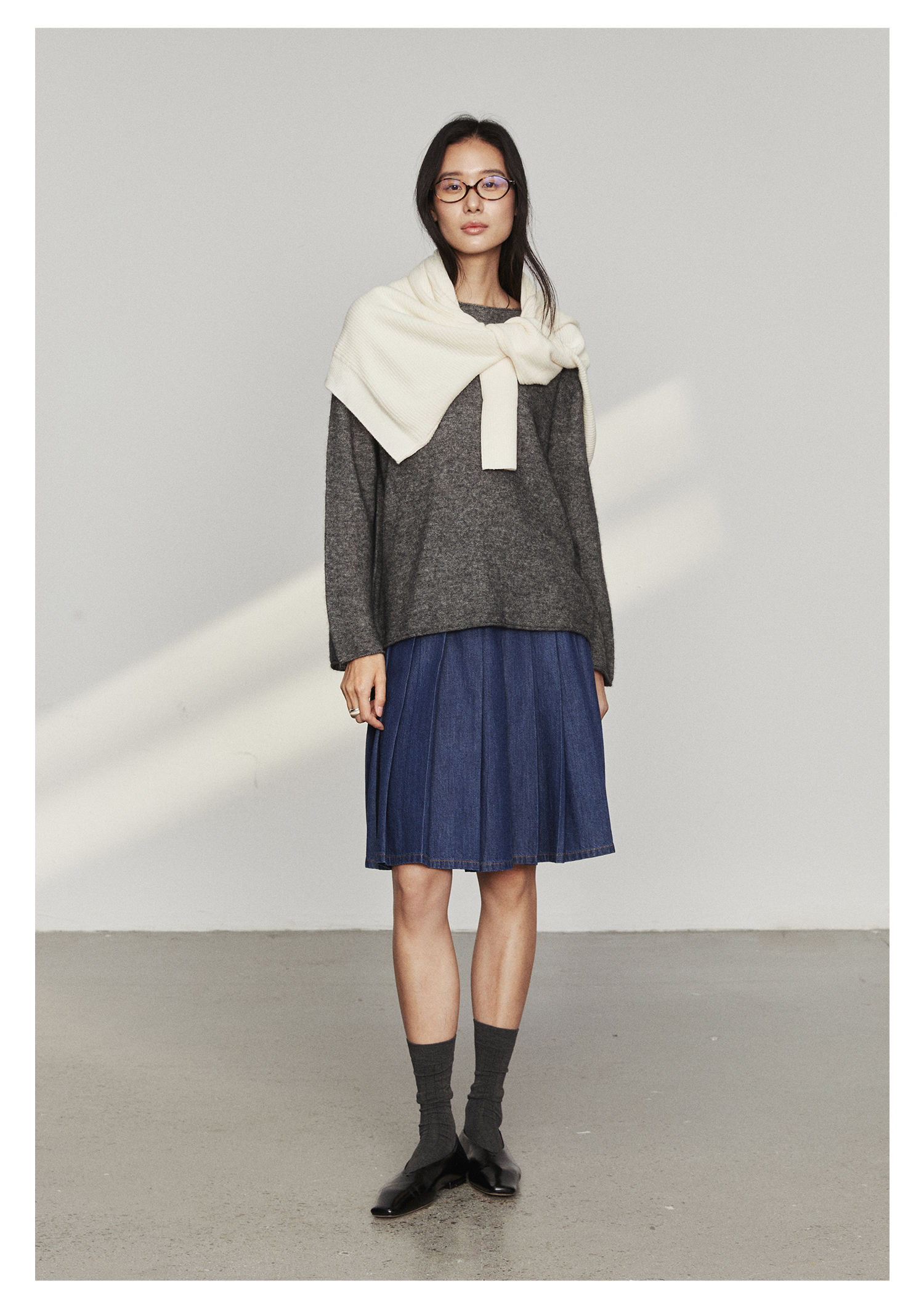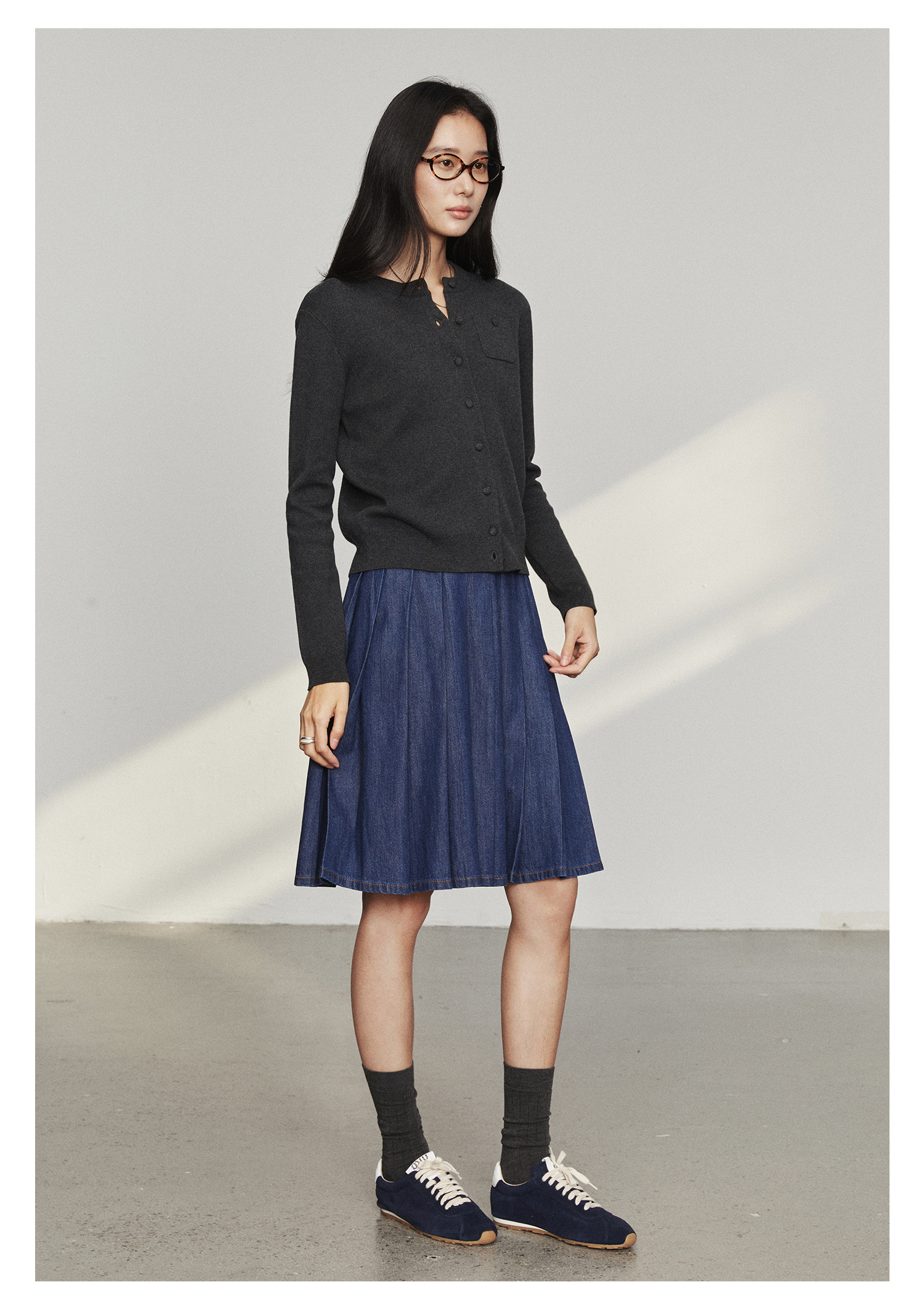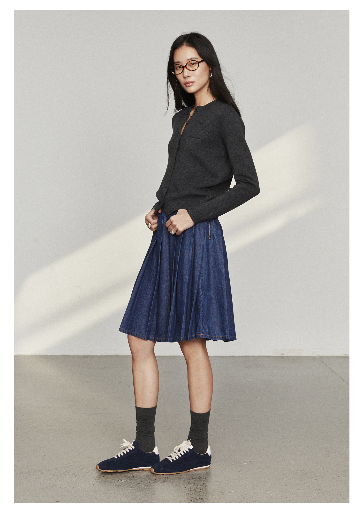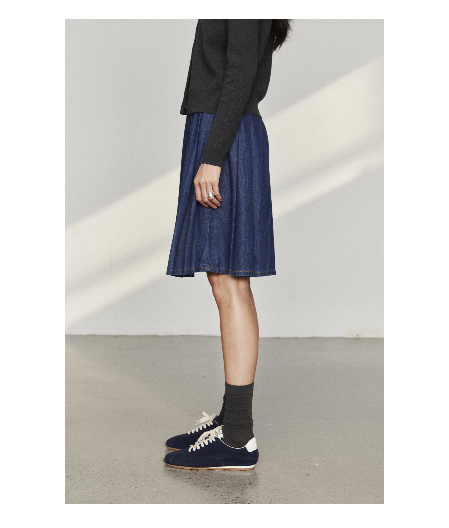 棉仓3561517005-秋季新品mui风百褶半身裙 通勤A字版牛仔半裙