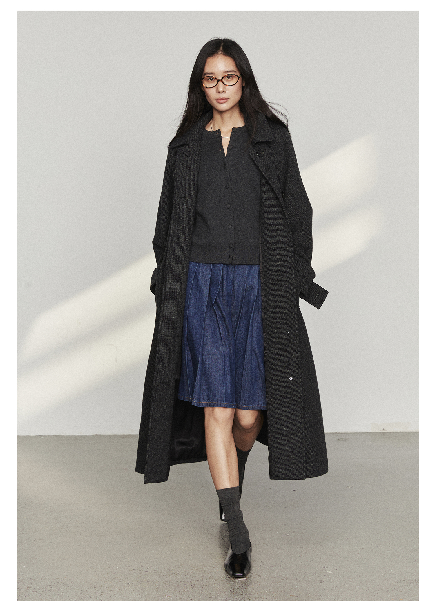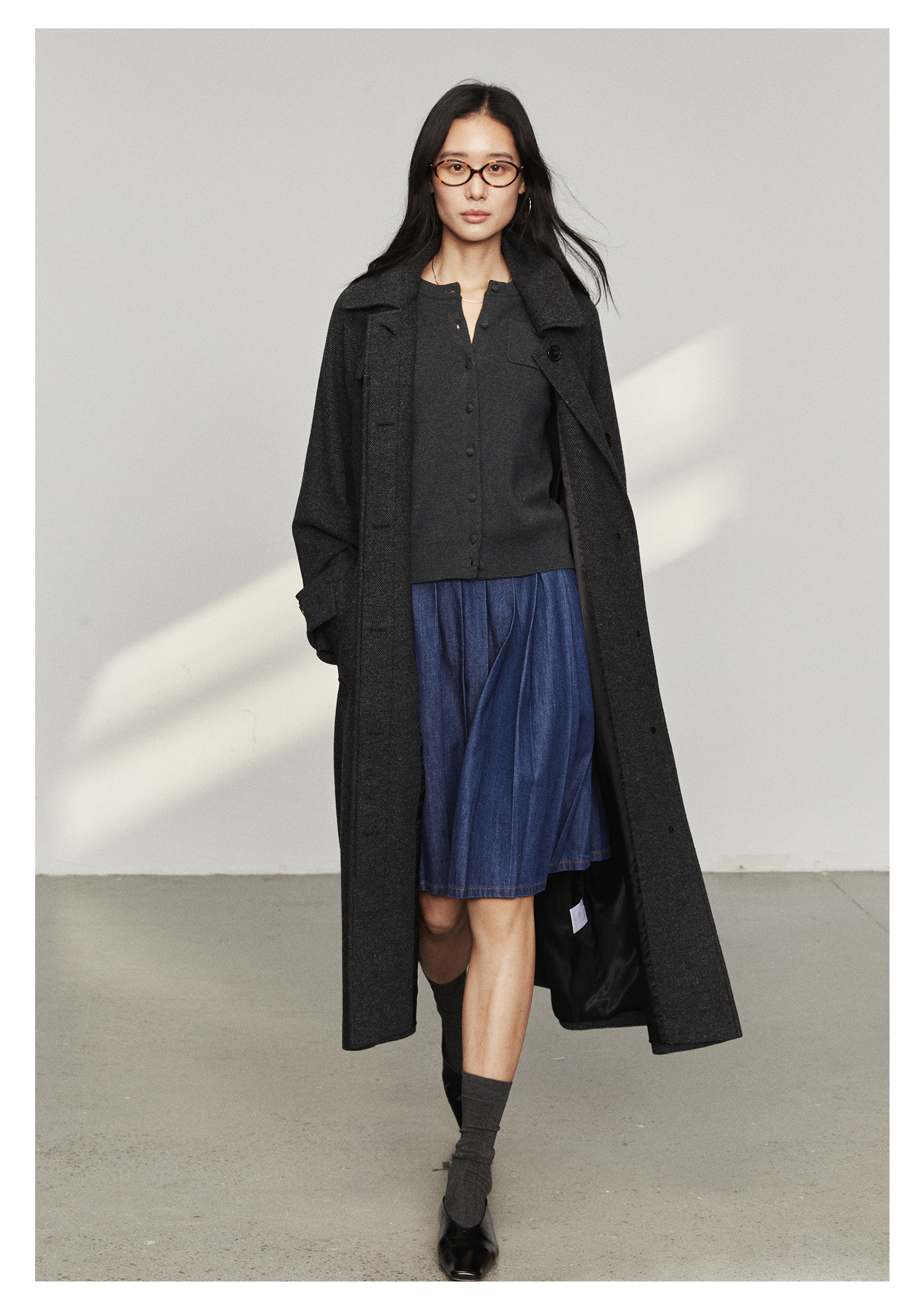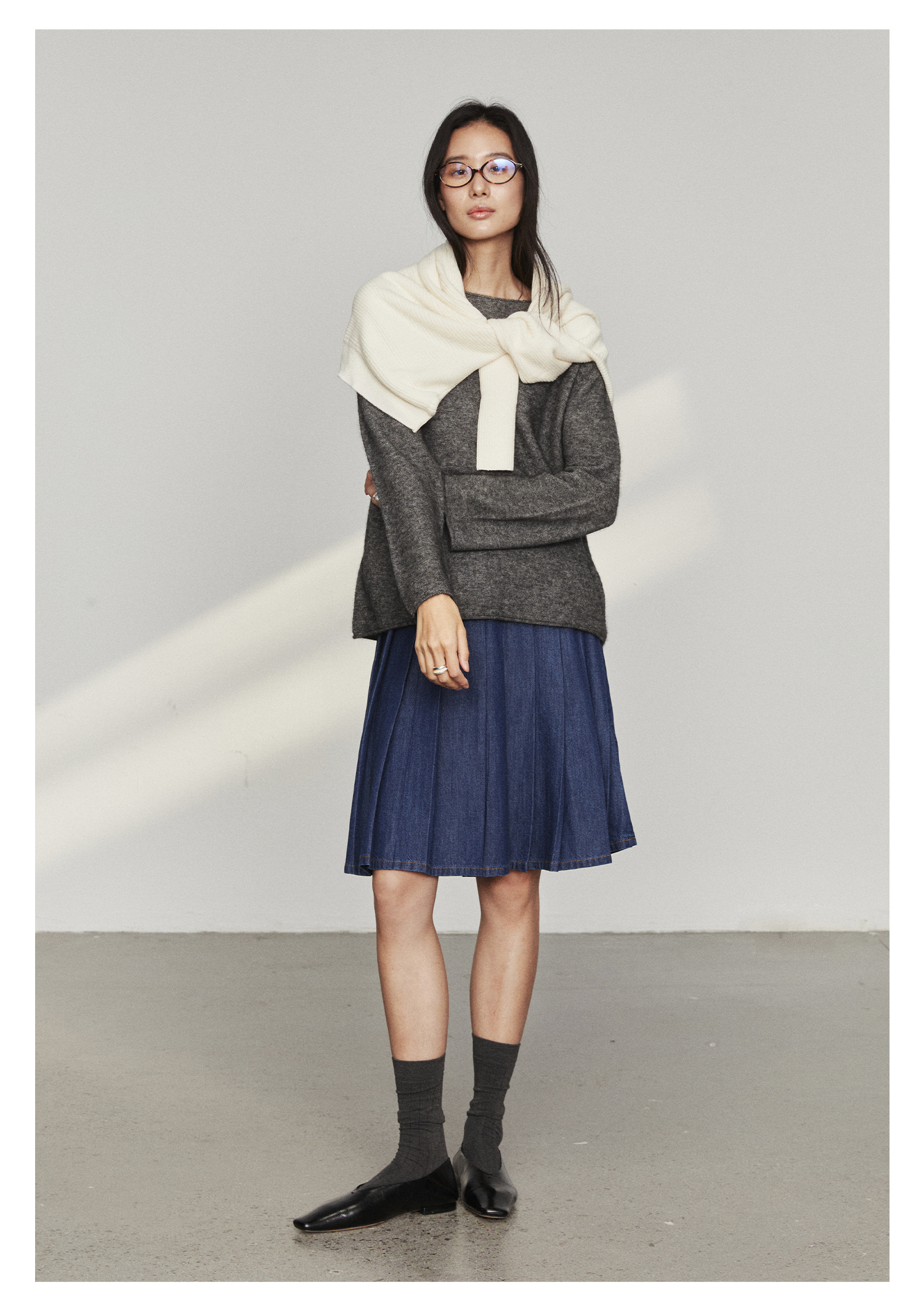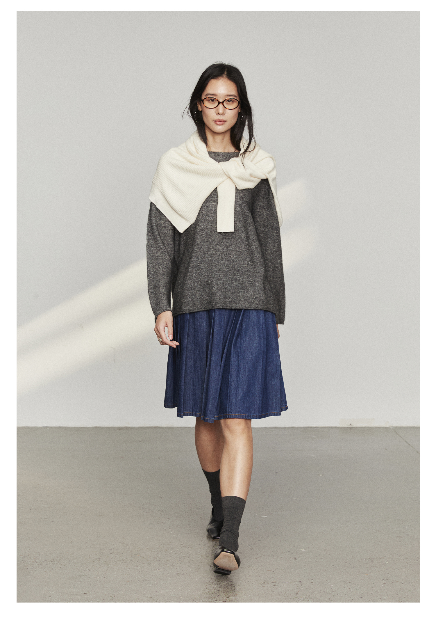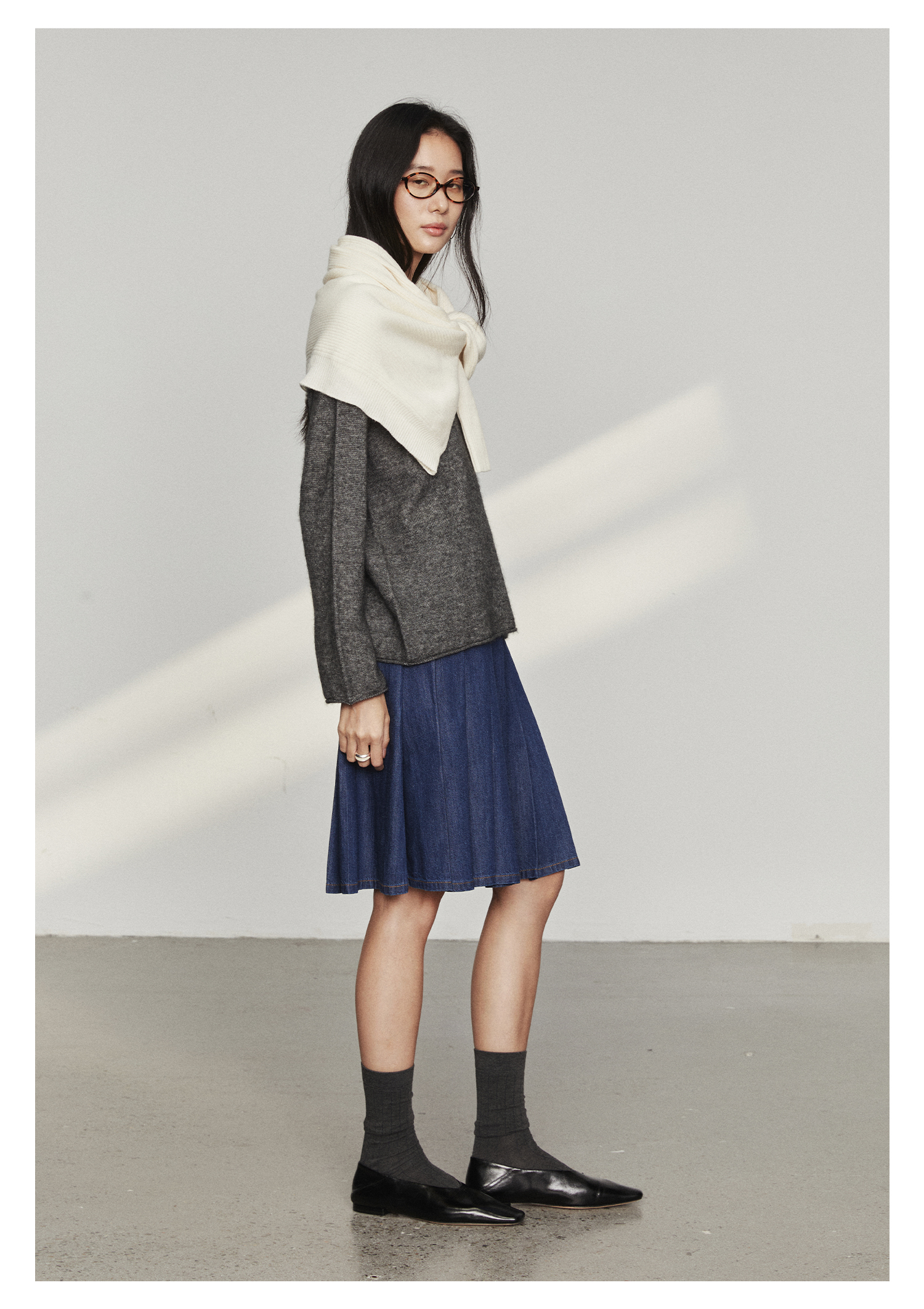 棉仓3561517005-秋季新品mui风百褶半身裙 通勤A字版牛仔半裙