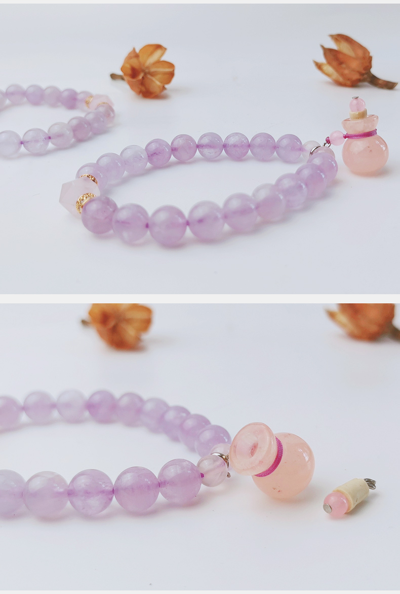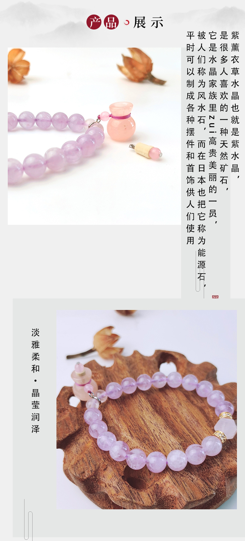 天然薰衣草紫水晶粉水晶福禄葫芦单圈扩香手链 精油 扩香 养护