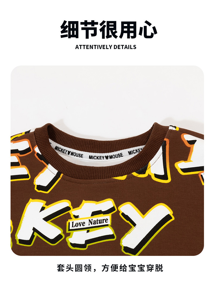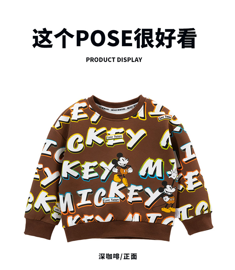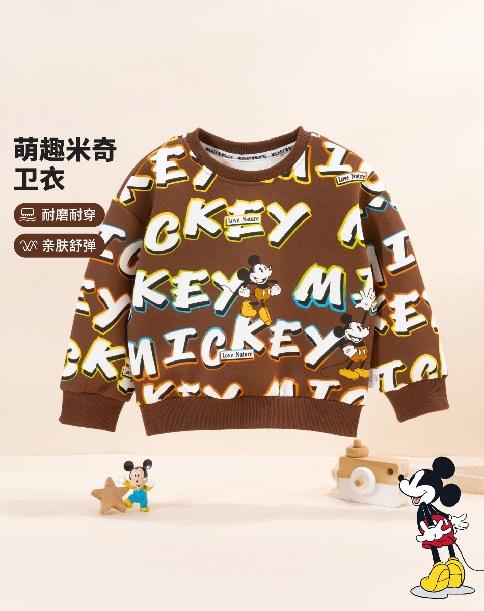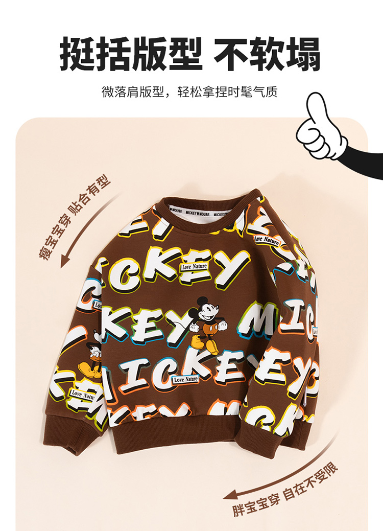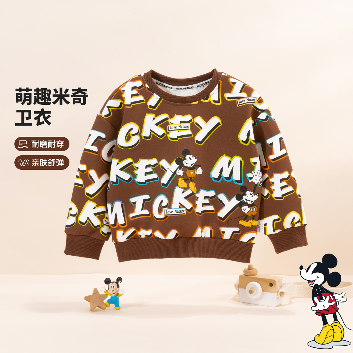 【商城同款】迪士尼童装男童卫衣春季儿童宽松休闲圆领卡通印花上衣2024新款ZD3DS025