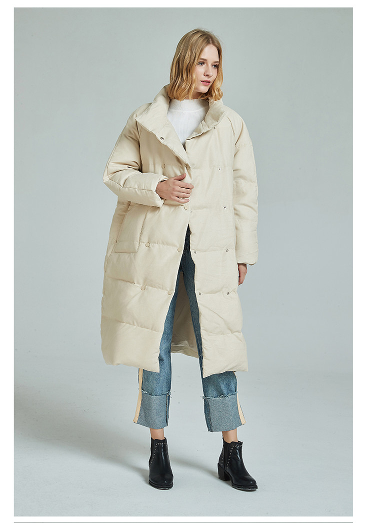 第二款:长款羽绒服,米白色/牛仔蓝色