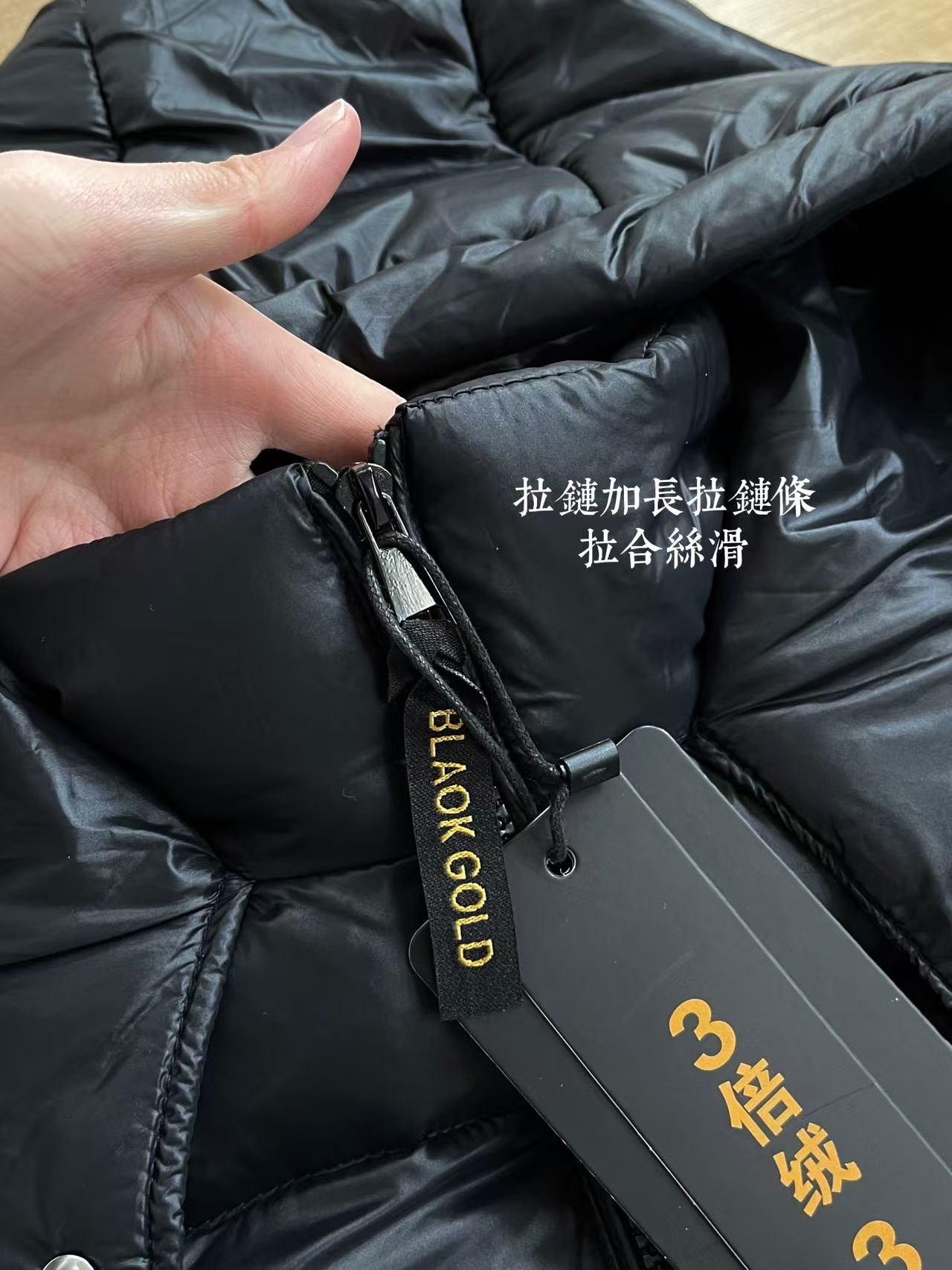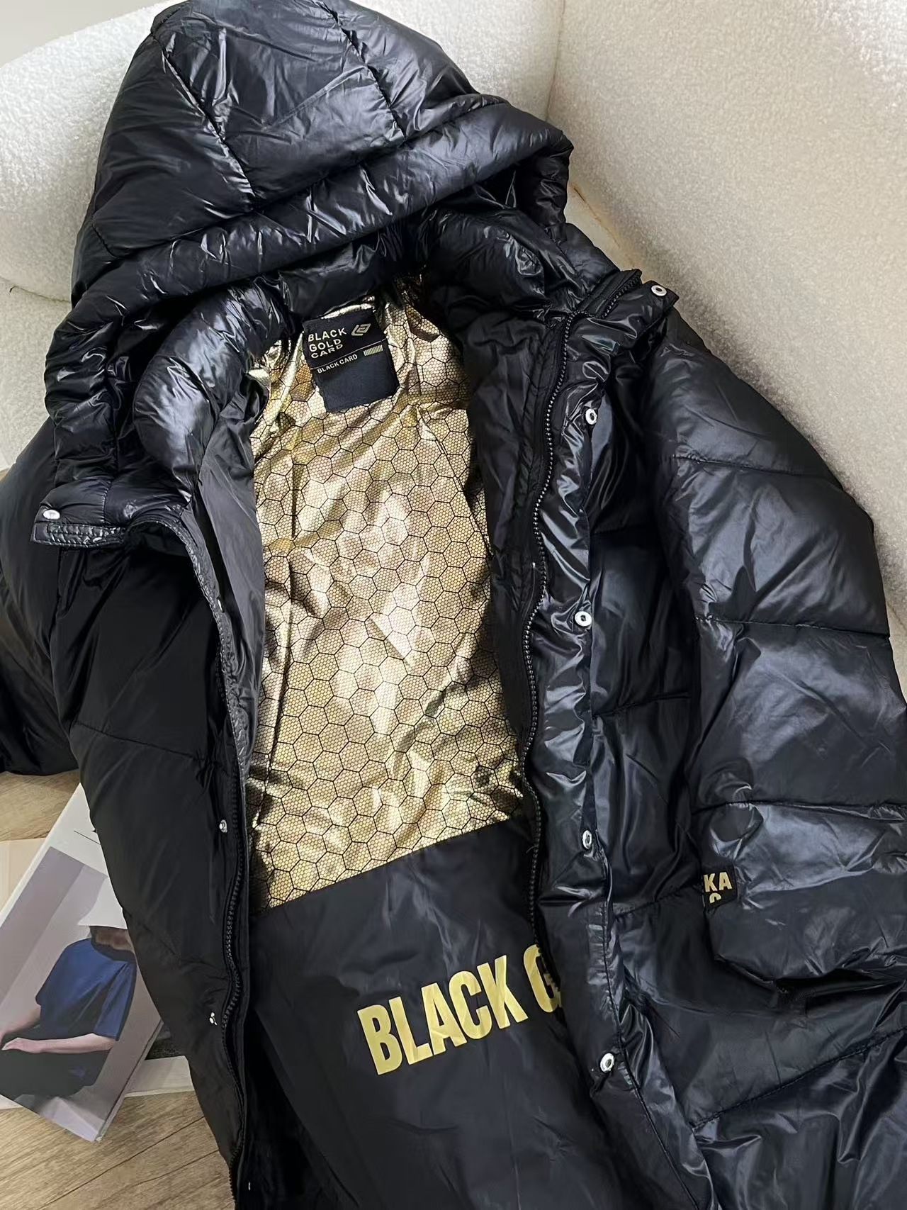 超有辨识度的黑金羽绒服。