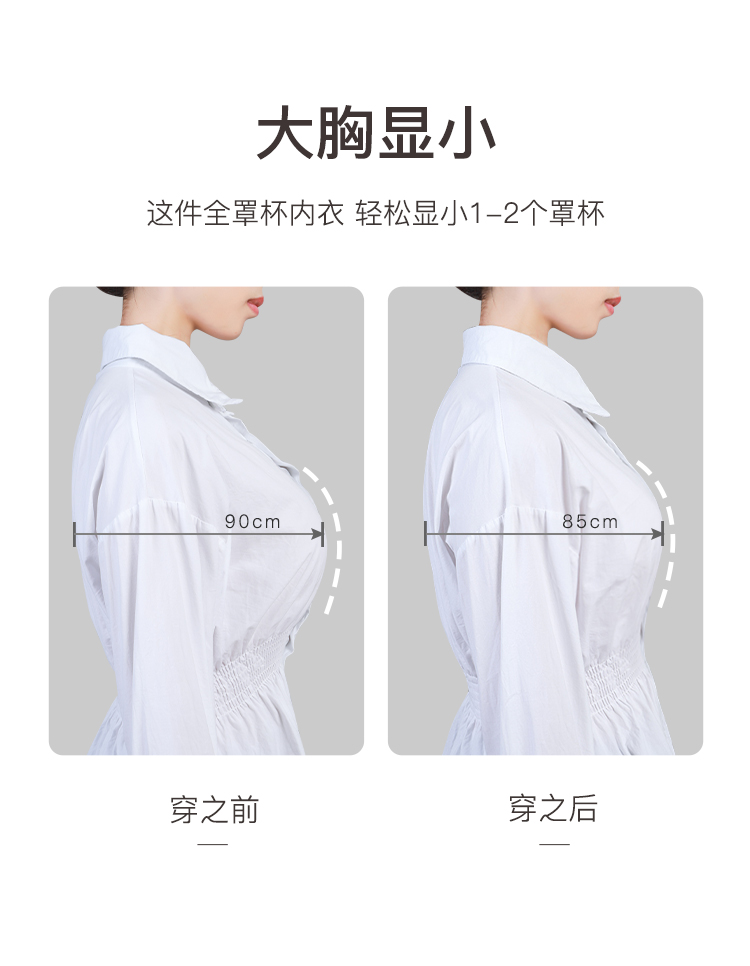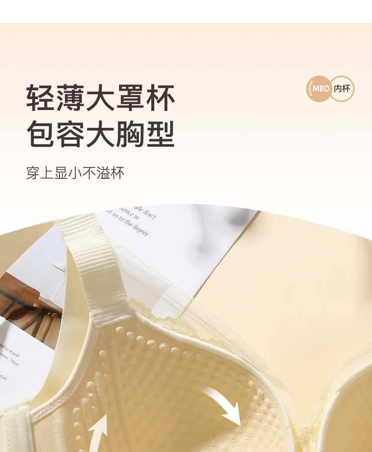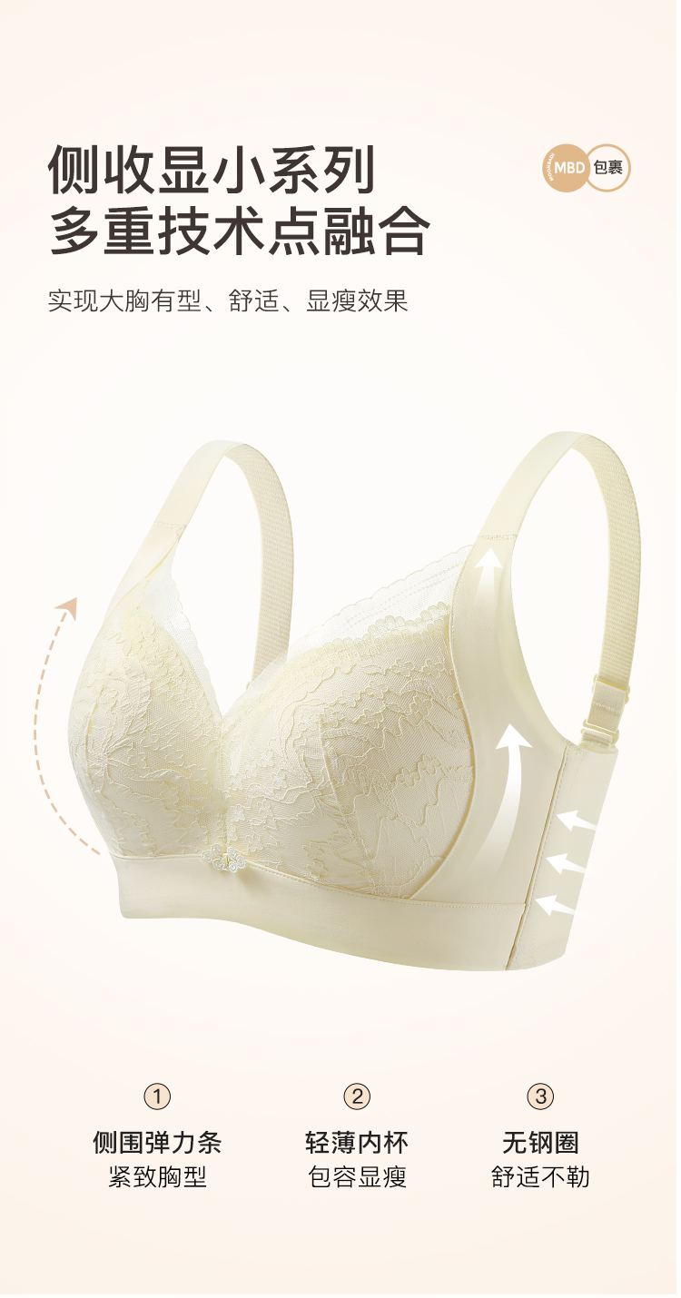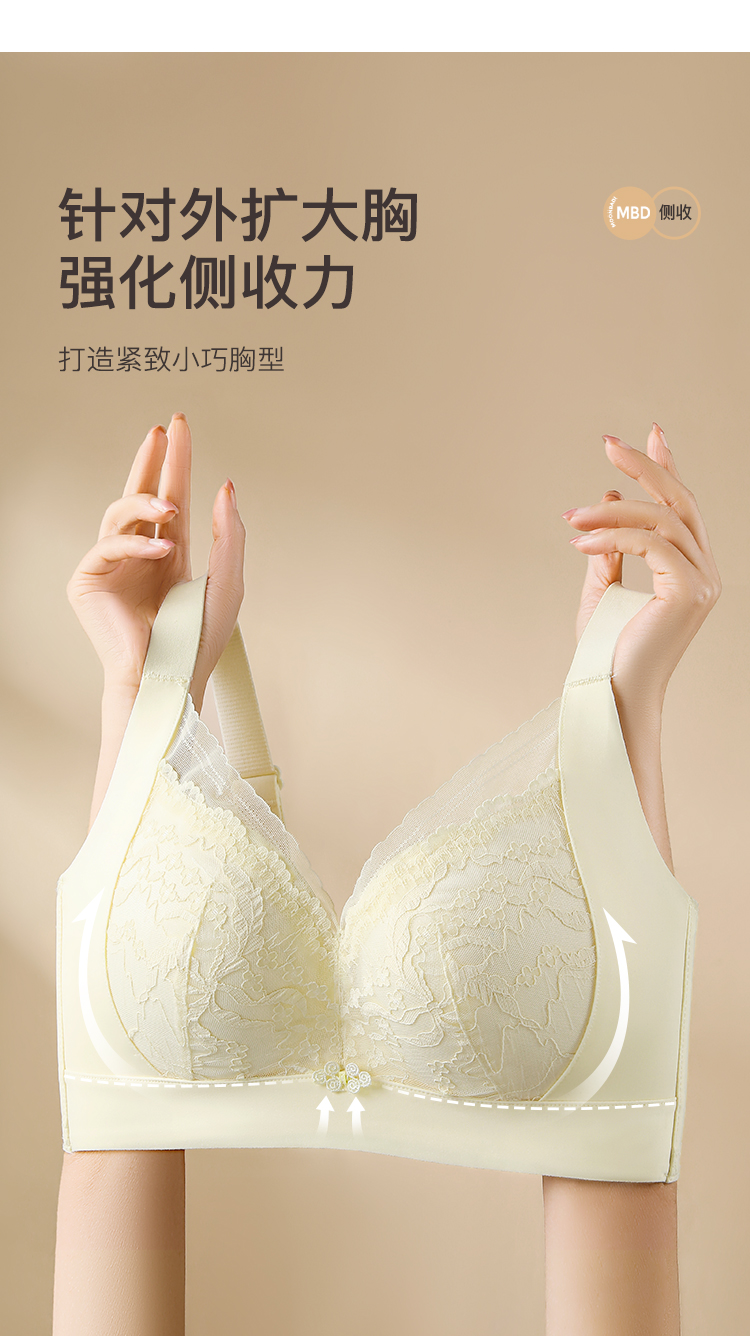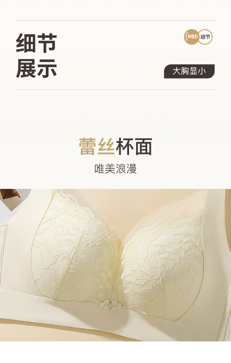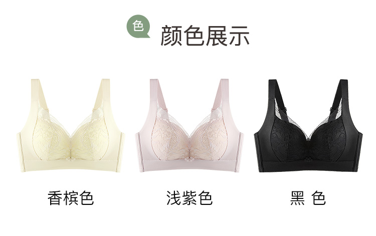 【大胸显小】时尚蕾丝按摩颗粒内杯文胸全包显瘦侧收防垂内衣女花语凝香