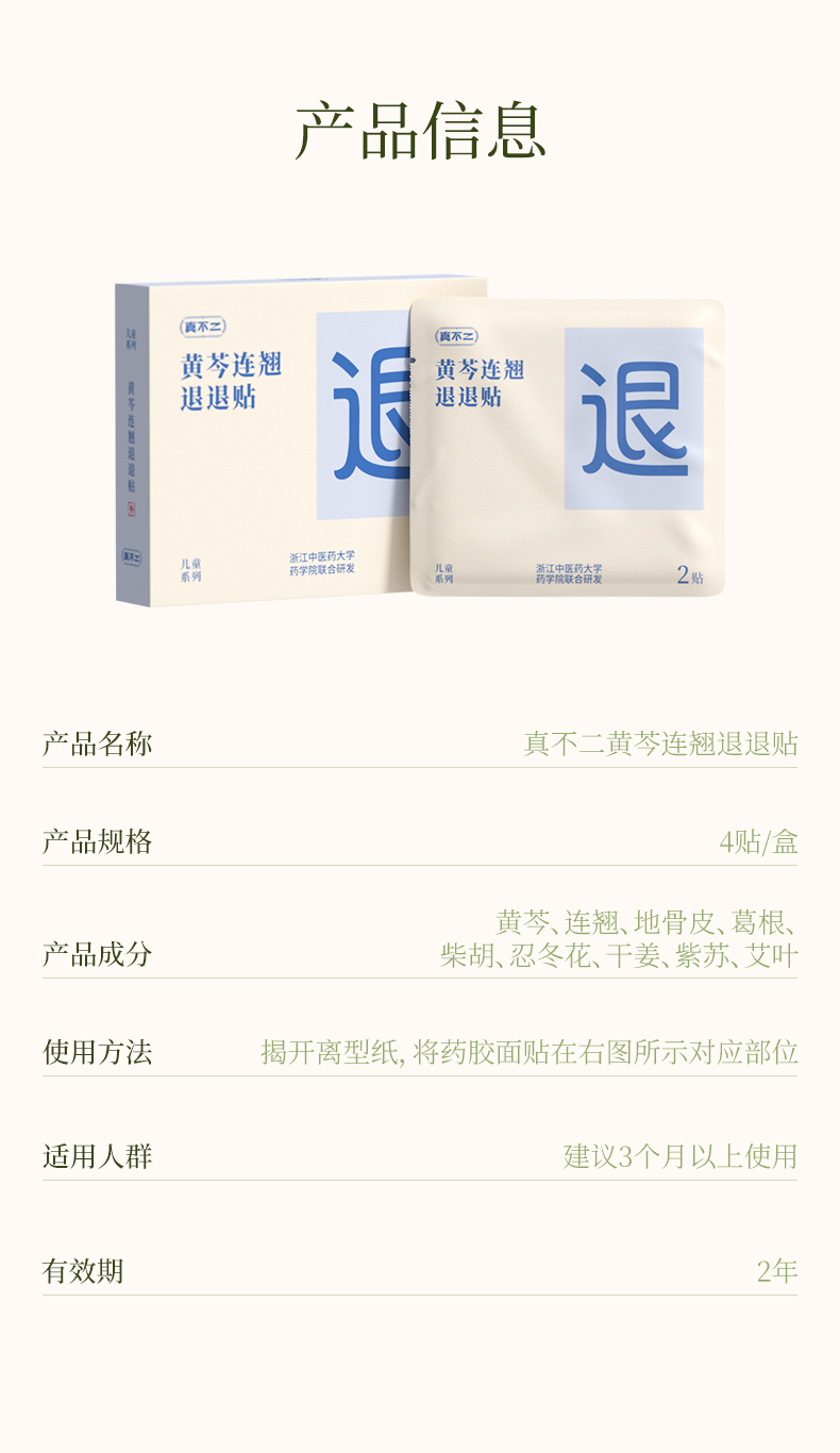 真不二黄芩连翘退退贴2贴/袋,2袋/盒。效期至2027.1月