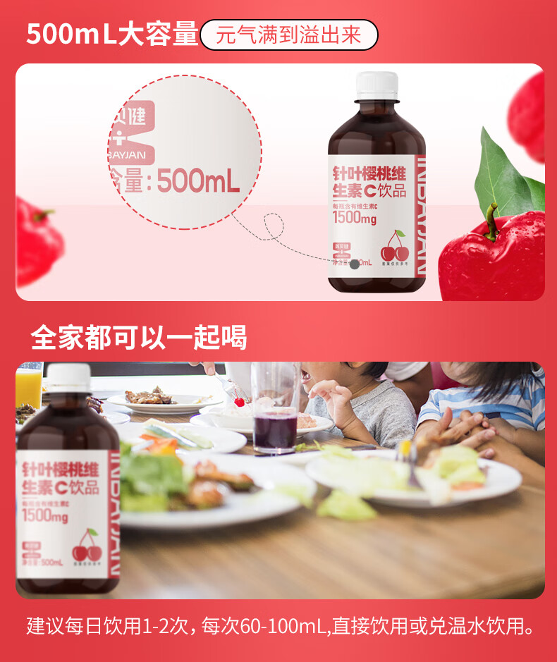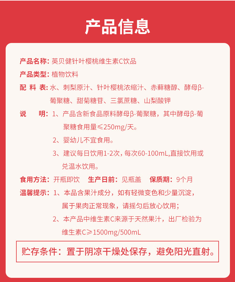 英贝健针叶樱桃维生素C饮品500ml(T)