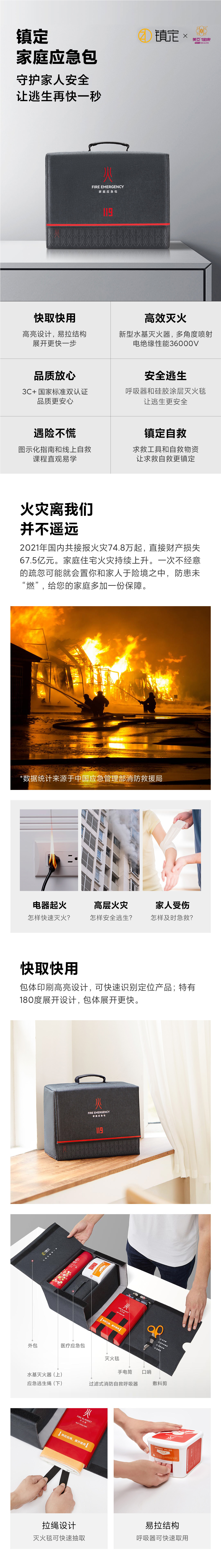 美亚镇定 家庭消防应急包 一套/箱 (深灰色)